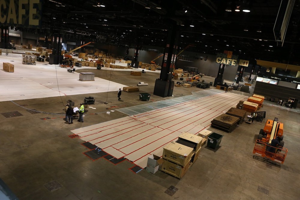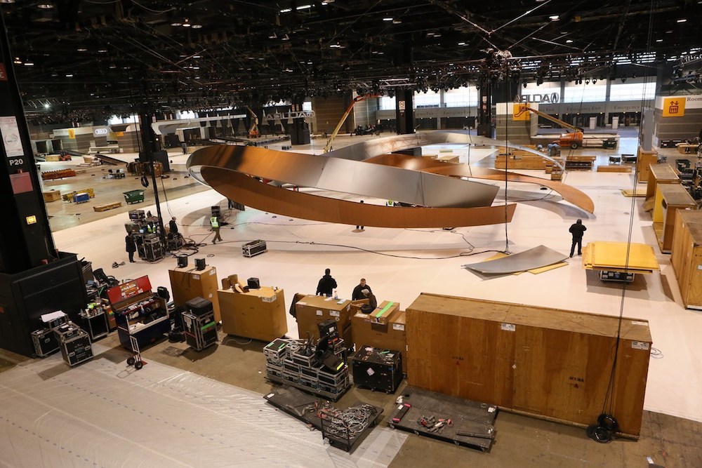 With lighting rigs and flooring in place, individual booth structures can begin to be assembled by a multitude of contractors and subcontractors. While Konecki orchestrates the entire operation, car companies have their own contractors that carry out their specific design ideas. With manufacturers like Mercedes-Benz, FCA, Honda, and Chevrolet typically building highly interactive and rather large booths, the process can be lengthy and tedious.