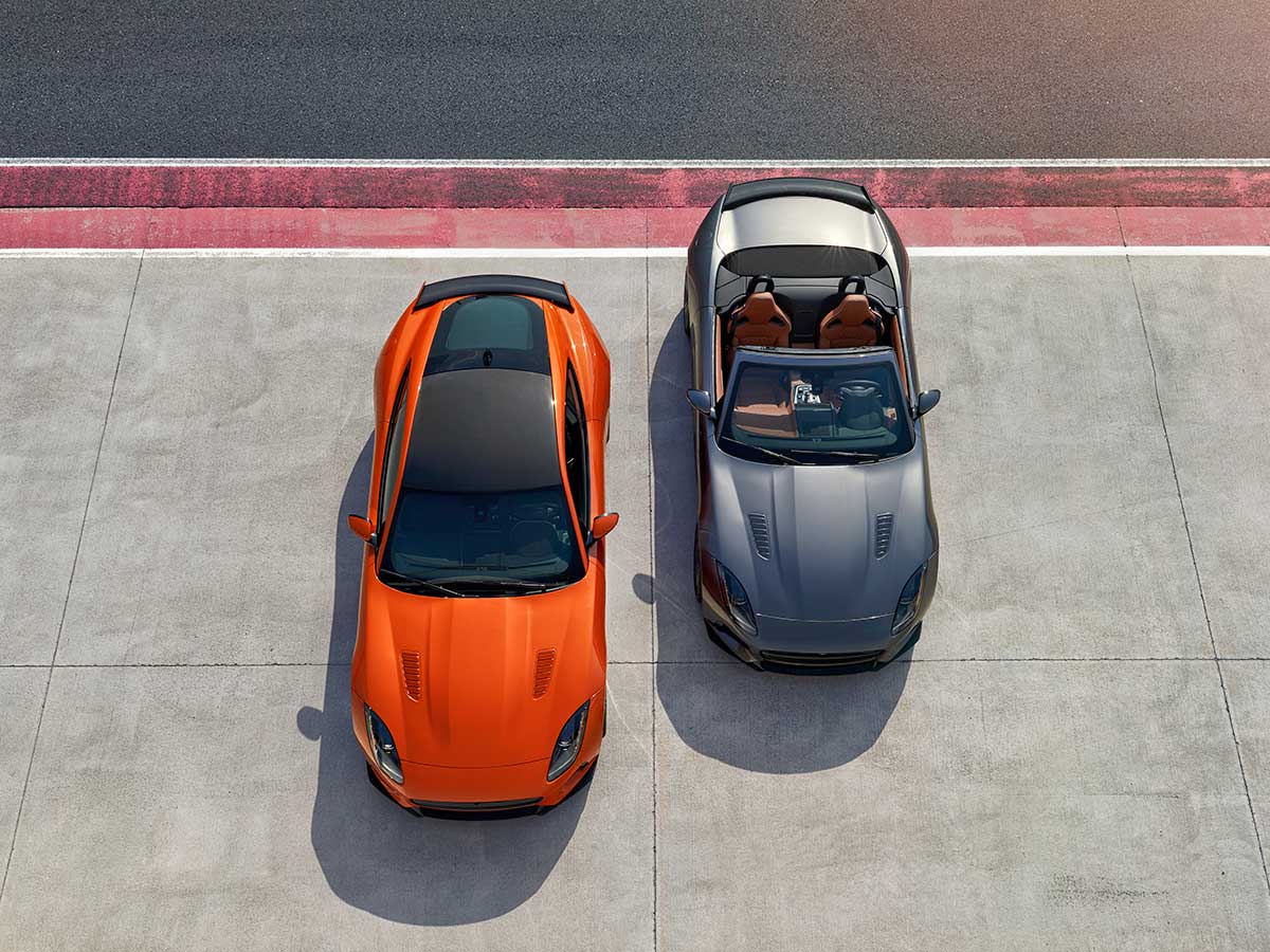 Output alone will put it in front of the panthera onca pack—it has at least 17 hp and 16 lb-ft more than the current leader, the explosive F-type R—but Jag wanted this SVR to be separated by its ability to use that power. So the SVO team fitted it with larger intakes and a front splitter, extra venting on the hood, an active aero wing on the decklid and a larger diffuser below. Handling is edgier thanks to an adaptive suspension and electronic rear differential; curb weight is down thanks to a titanium exhaust and forged, 20-inch lightweight wheels. The options list will include carbon ceramic brakes good for a further 46-pound diet. The interior gets more aluminum trim, and a sport steering wheel facing quilted sport seats. Using an eight-speed transmission and all-wheel drive to get power down, it’ll scamper to 62 miles per hour in 3.7 seconds, topping out at 194 mph in the convertible and 200 mph in the coupe.