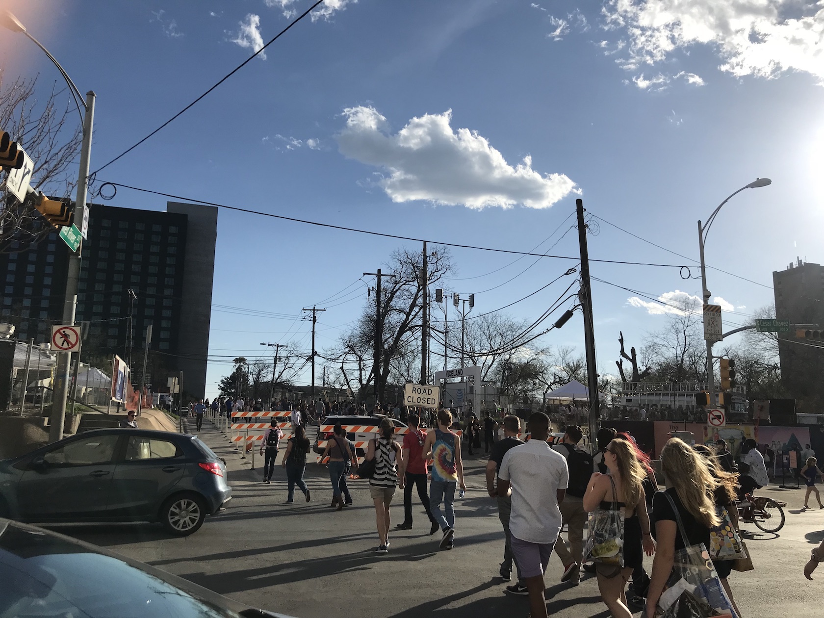 The statement “moving … to a company that provides mobility” could be read as nakedly hostile to the driving enthusiast—the savages at AMG would be mortified—but is perfectly fashionable at “South by,” which was briefly, in the middle of the last decade, a launchpad for hot apps but has since sprawled across TV and film, music, comedy, and gaming, with talk titles like, “AI: Transforming Luxury, Fashion, and Beauty;” “VR’s Implication in the Sports Industry;” and “Accidentally Making the Most Popular Podcasts Ever.” It’s Spring Break for entrepreneurial tech and culture nerds, where a hard-networking brogrammer, an anemic fanboy, and a digital marketing agency junior exec stand outside a bar racing to snag tickets to a surprise comedy show via the fittingly slick SXSW app.