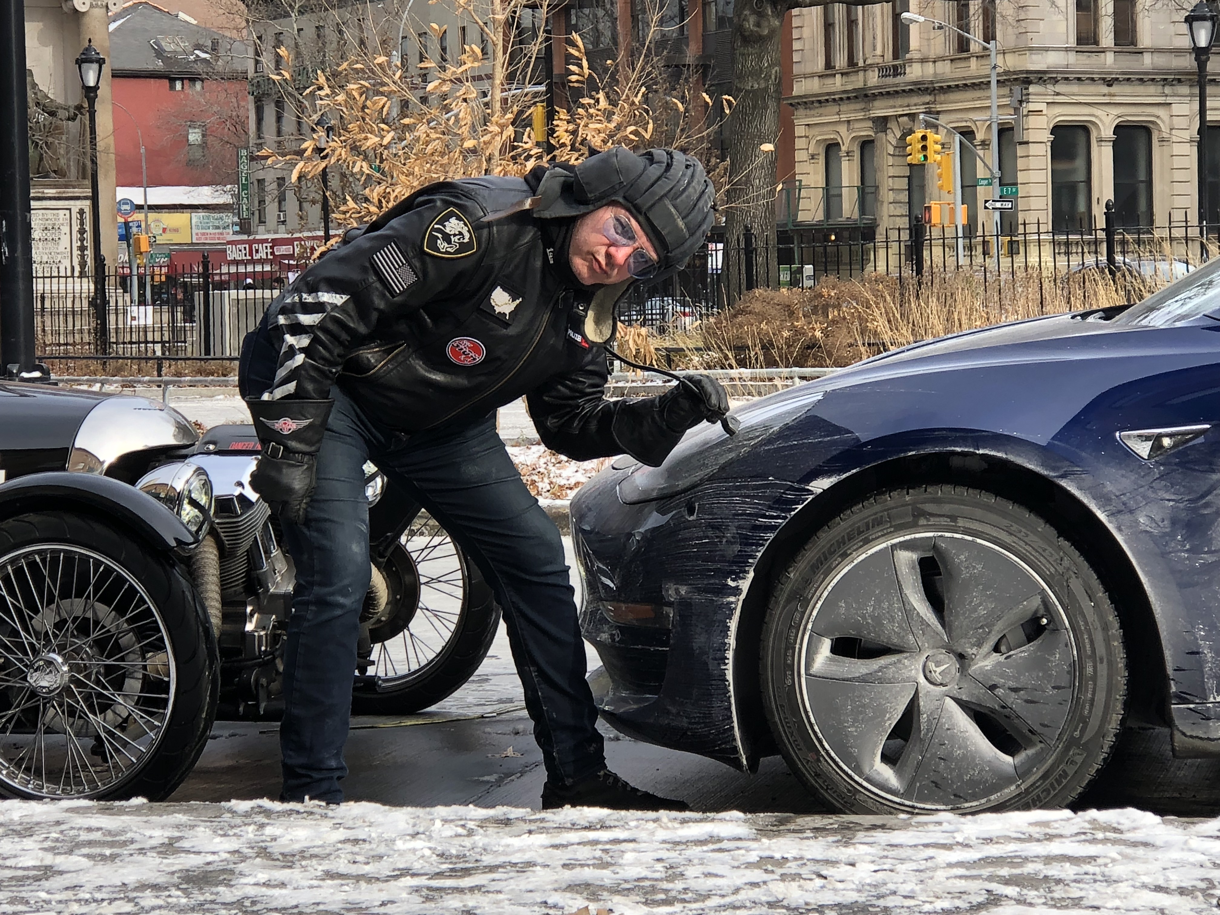 The Tesla has a brilliant venting system concealed in the dash, with a tedious control system built into the touchscreen. The Morgan has a brilliant venting system designed by Mother Nature, controllable within a narrow range only by scarf placement.