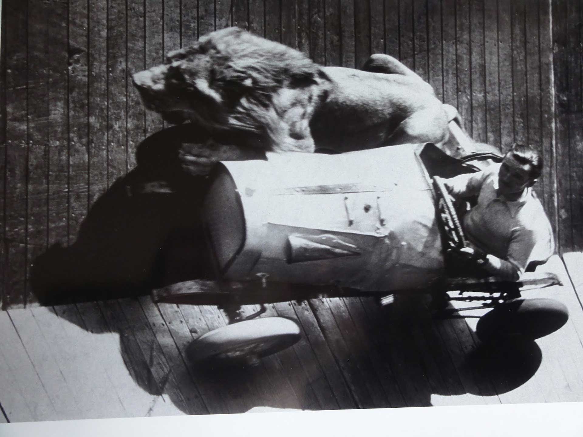 This guy, who’s got a lion riding shotgun. In the last thralls of Vaudeville, some entertainers put new twists on old acts to boost sideshow attendance—in this case, traversing a silodrome whilst accompanied by a lion. Lions, as you know, have sharp teeth and carnivorous instincts honed over several millennia and sometimes get hungry. This guy, presumably, is aware of those things. He just doesn’t care. Hero.