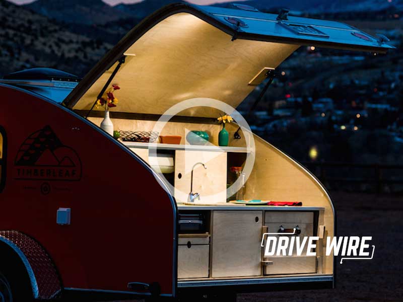 Turning to gear, we’ve found your new lightweight camping trailer. The Timberleaf is a teardrop-style compact with all the modern advantages – a queen size bed, plenty of battery power, a deluxe upgradable kitchen, and at twelve hundred pounds, you could tow it with a Miata. You know what? You should tow it with a Miata. Get yours at timberleaftrailers.com.