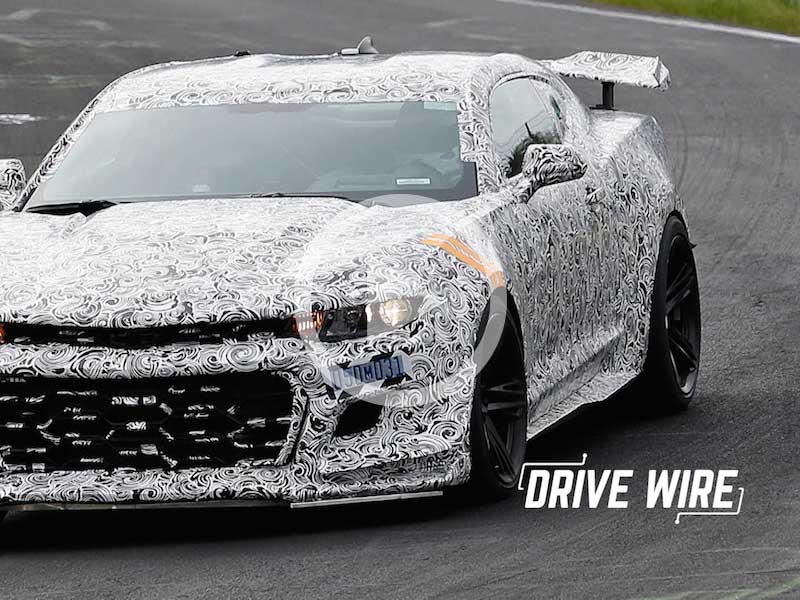 We have new spy shots of a heavily modified Camaro variant testing in Germany. And while it’s wearing a lot of cover-up, nothing can hide the aggressive aero and some truly massive Brembos on this thing. We’re going to go ahead and speculate that this is a Z28 in the making, but whatever it is, it’s positively predatory. We’re also happy to live in an era when the pony-car wars are fought on the Nurburgring. The last Z ran a 7:37 lap there; this one, with its huge spoiler, might turn a sub 7:30.