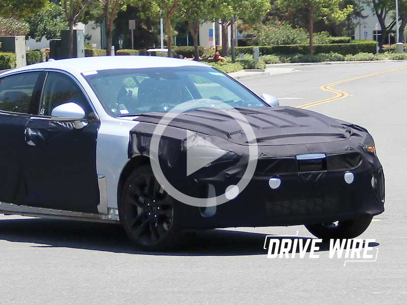 We have spy shots of the new Kia GT sports sedan testing in southern California, and despite the car being wrapped in an anti-spy parka, we like what we see. Appearing to be heavily based on the GT4 Stinger concept from the 2014 Detroit Auto Show, it seems to have kept the sleek Kammback design and the dramatic front fender flare-vents. Rumor has it the top-line model could be getting power from Kia’s turbo V6 driving an 8-speed automatic transmission, which would have it competing with the Audi A7 and Mercedes-Benz CLS, but at a price point of about $40,000. We expect to see a more finished version as early as this year’s Paris Auto Show.
