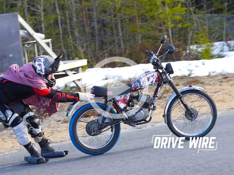 In today’s ridiculous video, we have something more ridiculous than usual. If you know drift clown Tigerman, he’s back – if you don’t, watch a man in drainpipe shoes drift a one-and-a-half horsepower vintage scooter through water balloons. It’s beautifully, refreshingly, life-affirmingly stupid, and we love it.