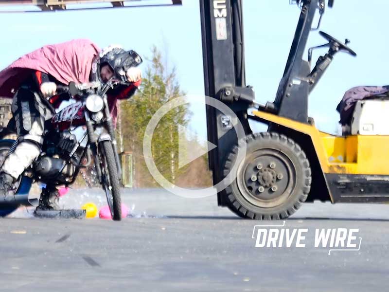 In today’s ridiculous video, we have something more ridiculous than usual. If you know drift clown Tigerman, he’s back – if you don’t, watch a man in drainpipe shoes drift a one-and-a-half horsepower vintage scooter through water balloons. It’s beautifully, refreshingly, life-affirmingly stupid, and we love it.