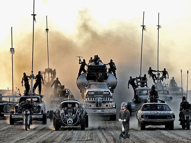 Our favorite ‘shop job is a hard-fought tie between two incredible scenes. The first is Dinklage leading the pack of marauding vehicles from Mad Max, because the submitter took great care to include dust coming from underneath his wheels. The second is where he joins the nonplussed gang of Spongebob Squarepants and Patrick Star as they amble across the bottom of the ocean. While these are all great, what we’d really love to do is start a scooter gang with Dinklage, for real. If anyone knows how to make that happen, and/or wants to ride with us, drop us a line.