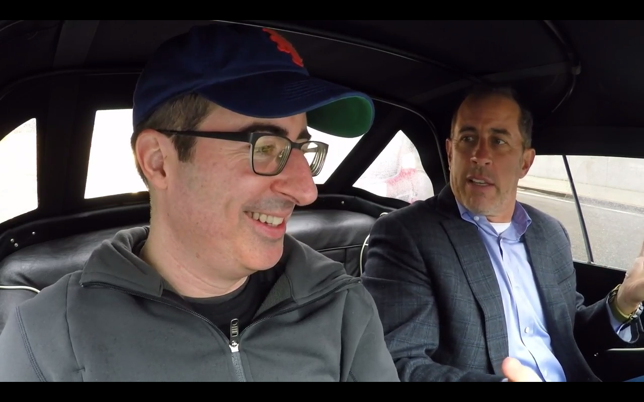 The car’s lovely, but the conversation really delivers. Topics? To start with, Oliver’s wife, a combat medic who joined up after 9/11 (Oliver, describing a gig in Pittsburgh: “It was like a war zone out there…” His wife: “No, it wasn’t.”) and his former hairstyle (Seinfeld: “Men with bangs disturb me.”) Also: stand-up audiences, eating Key Lime pie, donating jet skis to Doctors Without Borders, agitating the Russian government, similarities between hipsters and Orthodox Jews, and the “internal logic of comedy.”