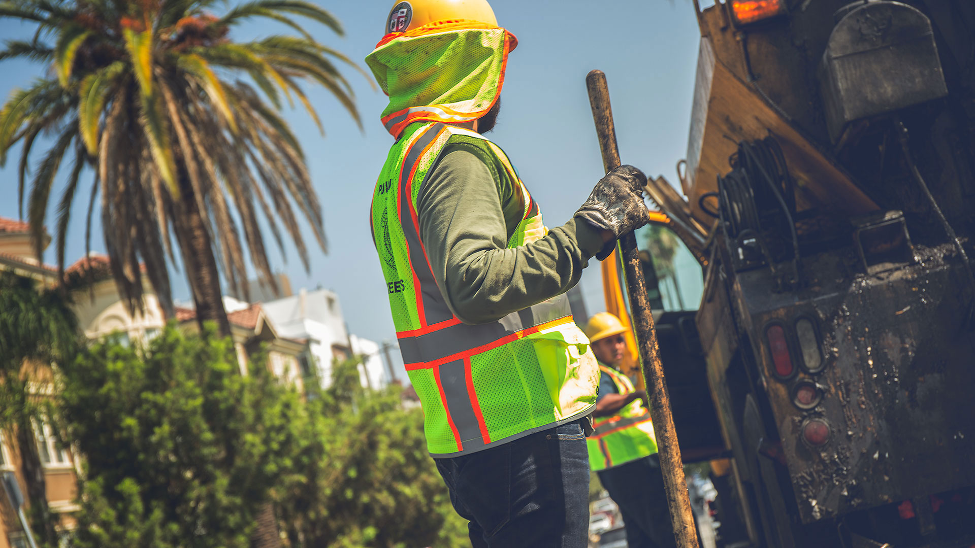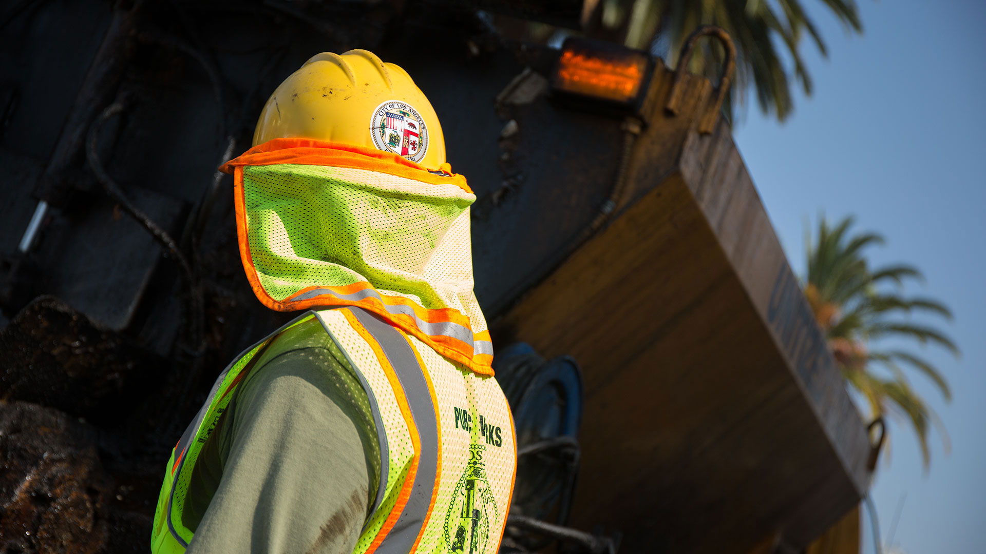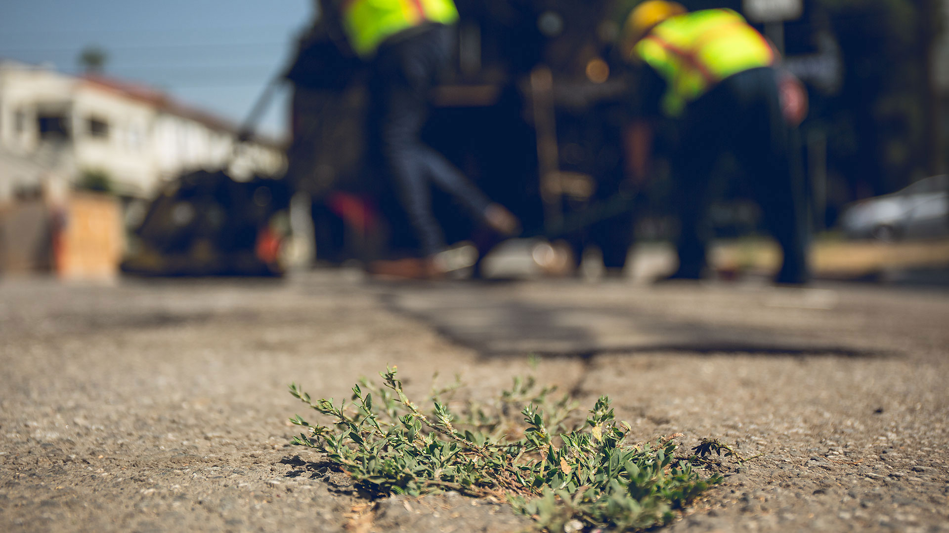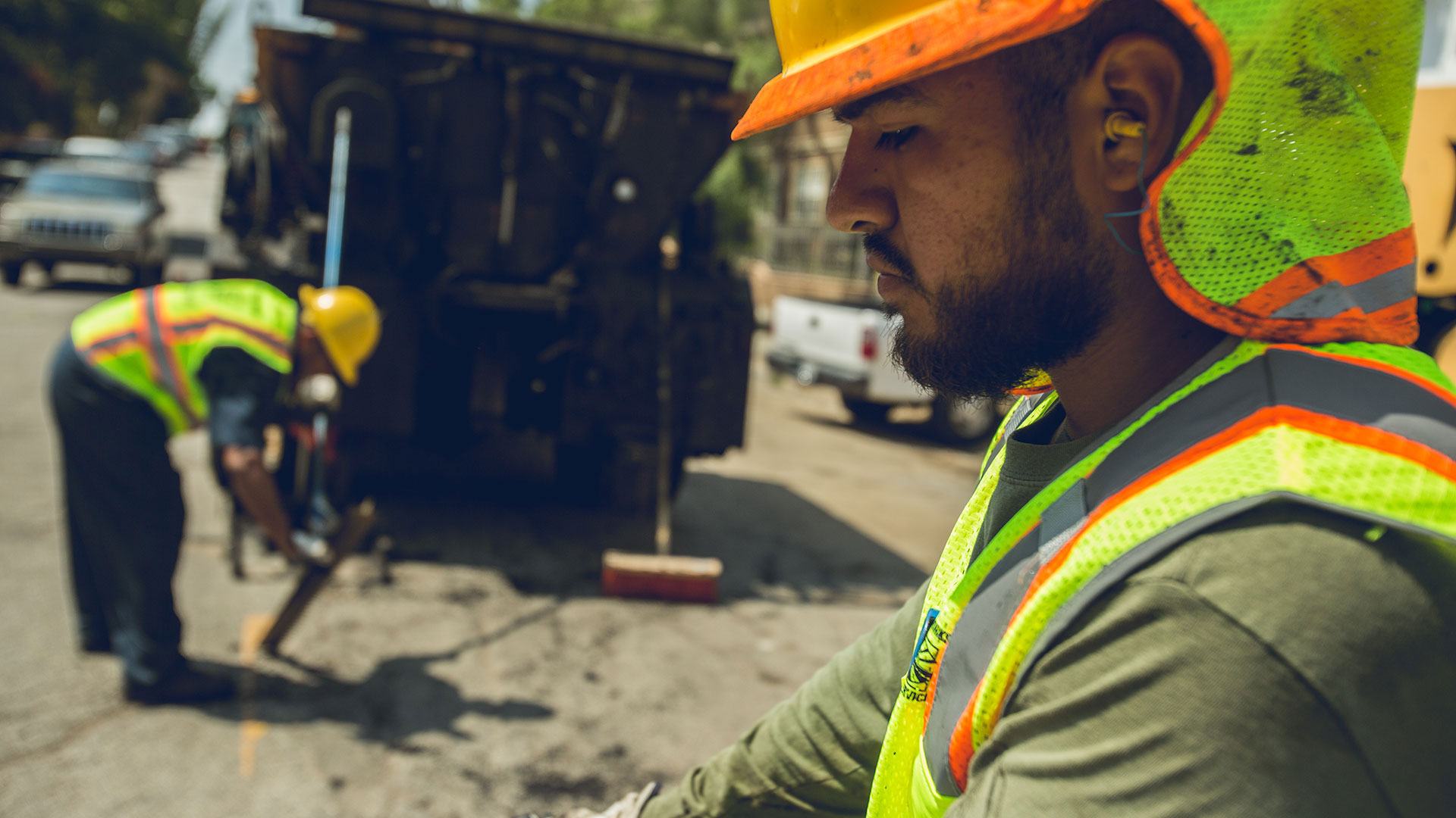 By 9:30 in the morning, the Koreatown pavement has hit 106 degrees. It’s all alligator cracks. Shear lines and potholes—big ones, by LA standards. And by 11:00 am, two fit young men with strong forearms and deeply tanned faces will have fixed all those potholes. They’ll have descended upon it from a big city truck in safety yellow and hard hats, coned off their turf, and used specialized tools to shovel asphalt, rake it out, beat it flat, and seal it against wet weather on a summer day when rain seems impossible. They’ll repeat the process over and over, and when they finish, a road that needs replacement will have had its life extended. It will be safer for cars and bikes and pedestrians alike. And then they’ll break for lunch as the pavement tops 142 degrees before starting all over again, on another beat-to-hell patch of Los Angeles road.