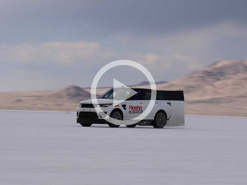 Mueller tailed a pace car driven just inches in front of her front wheel, piloted by professional motorsports driver Shea Holbrook; the Range Rover Sport SVR driven by Holbrook helped punch a hole in the air in front of Mueller to reduce wind resistance and make that incredible 147 MPH top speed possible.
