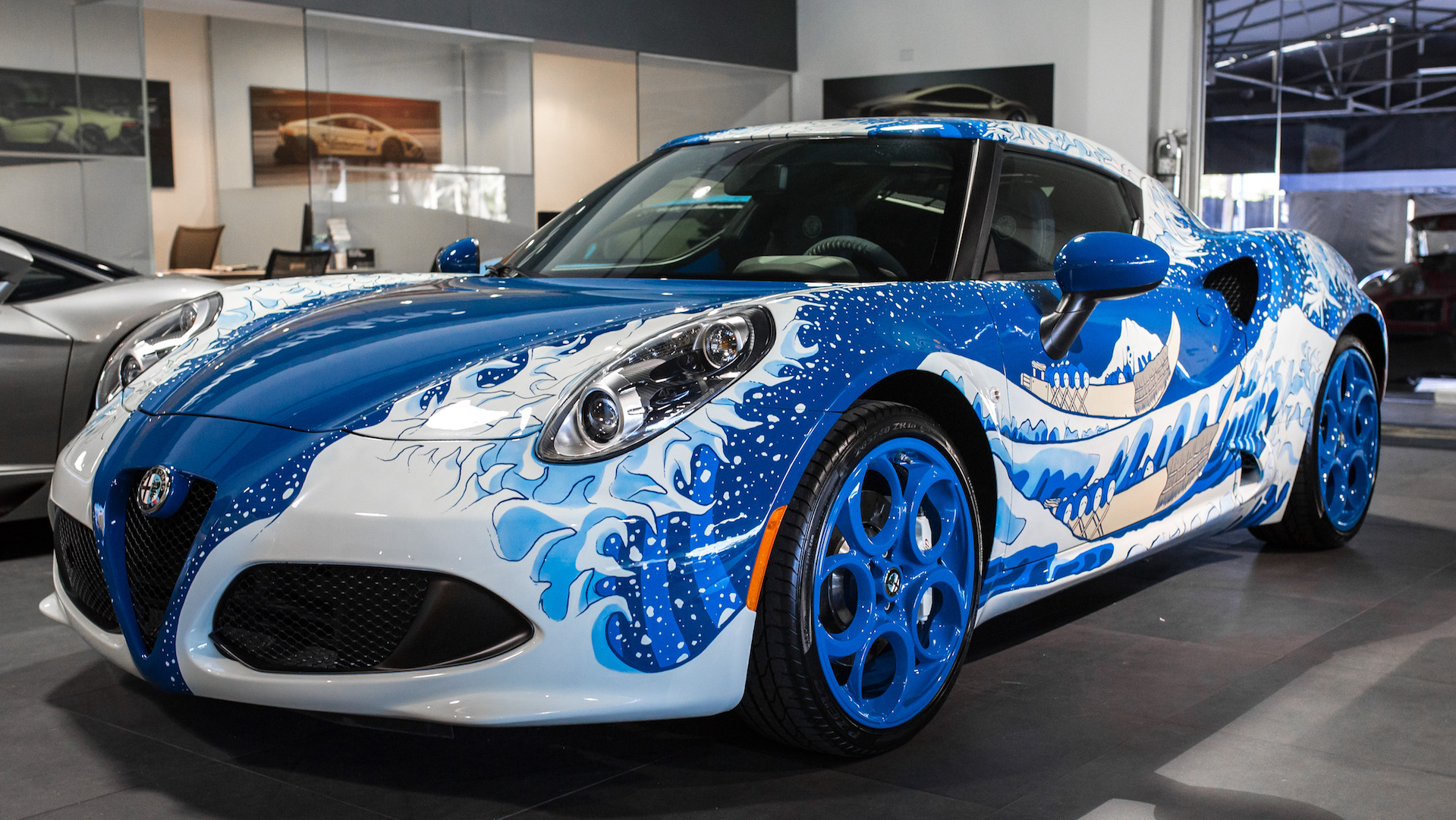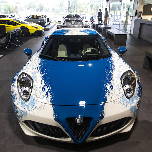 Perhaps you’re in the mood for a new piece of artwork, really fancy Katsushika Hokusai’s The Great Wave print, but would prefer it painted on an Alfa Romeo 4C. Lapo Elkann and his Garage Italia heard your very specific wishes and produced the one-off art car you see above and below. After a debut this summer in a gallery in Los Angeles and a quick showing at Pebble Beach, the marriage between Japanese and Italian cultures is back on U.S. soil and available for purchase at Prestige Imports and Lamborghini Miami.