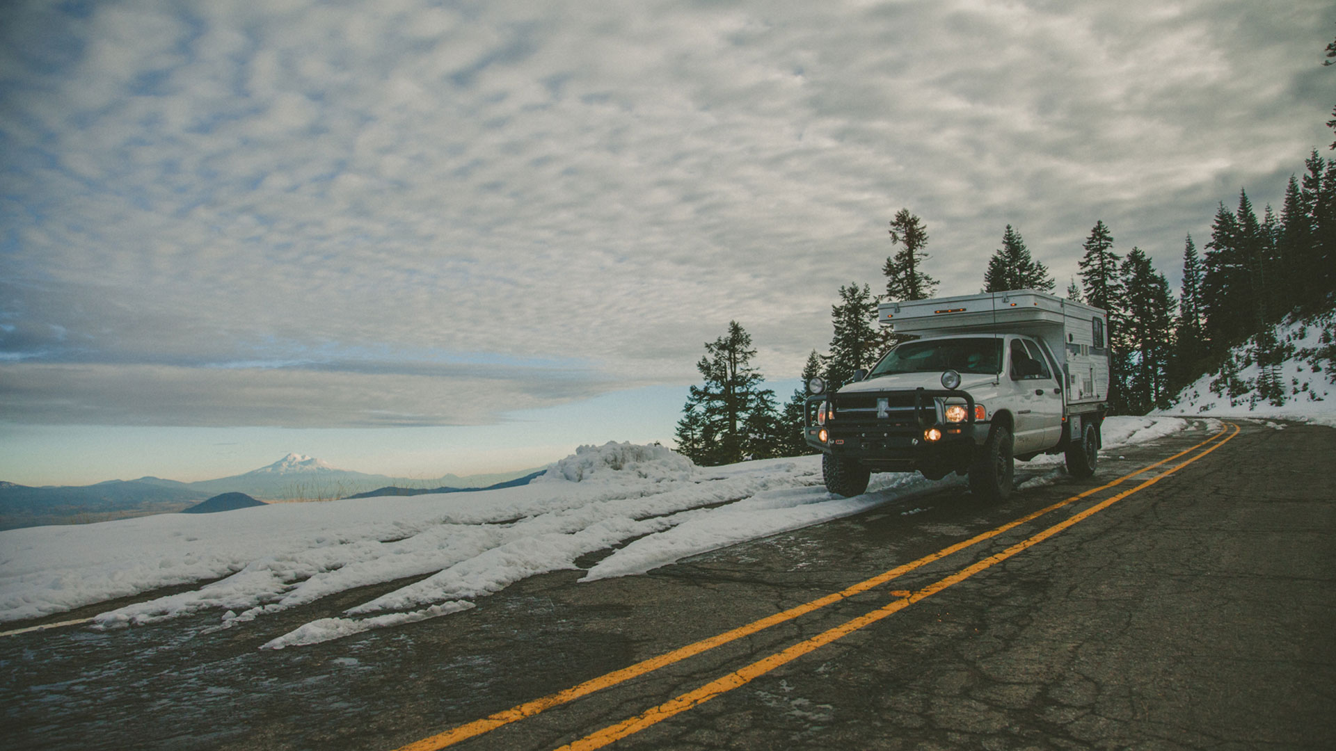 Instead, it climbs straight up Mount Ashland. Thick, wet snow lies in foot-high drifts on either side of the road. The sky clears just enough to give us a show, the last orange light of the day washing over Pilot Rock to our west, its white peak burning in the setting sun. It’s beautiful. Nearly enough drown my aggravation at myself for wanting to come back here. For hoping that it might be as good now as it was then.