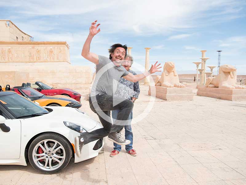 The new teaser trailer boasts that over the course of filming 27 cars were destroyed for the sake of the show. This is probably true given how much James May, Richard Hammond and Jeremy Clarkson enjoy blowing up, or just generally wrecking, the cars they drive. Also sacrificed for the sake of the show: 14,951 cups of coffee. This is probably also true given a six month shoot time and crew of more than 100 people.