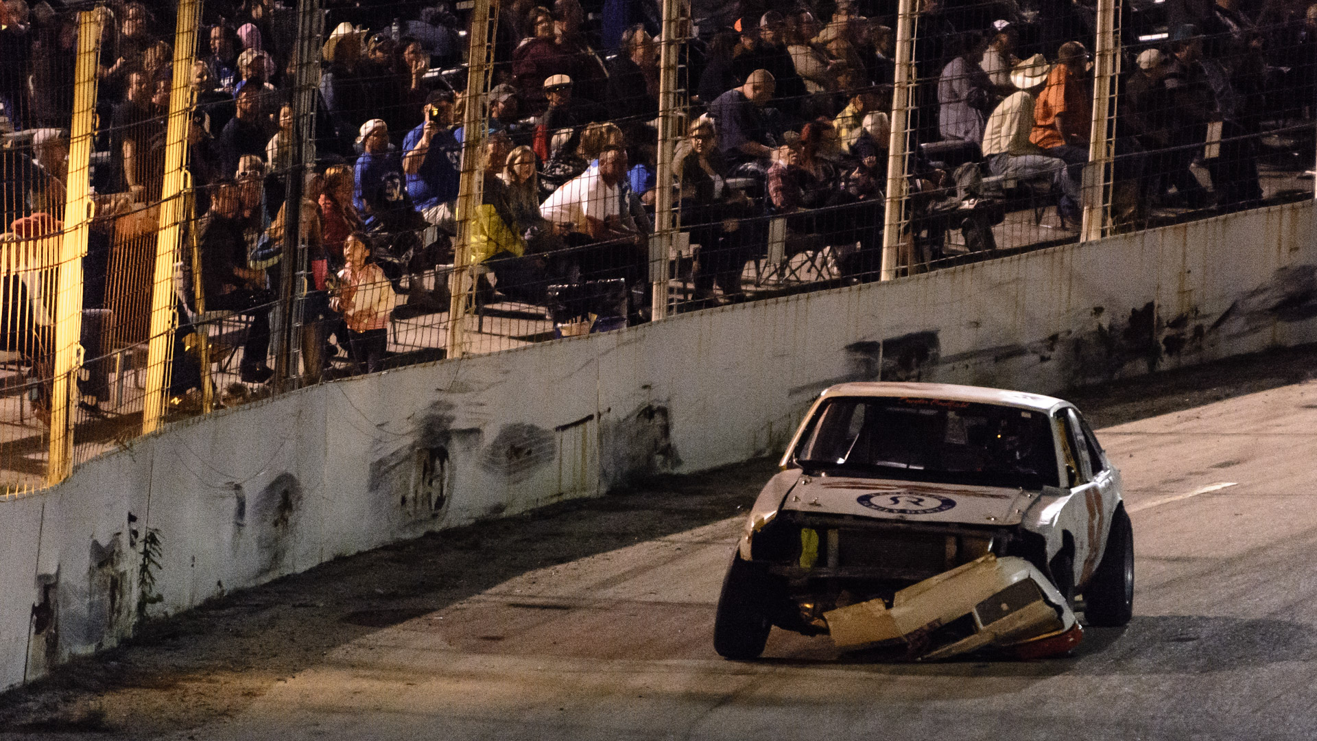 These aren’t the well-lit paddocks of COTA, yet no one seems to notice or care. Racers have been at the track all-day qualifying, but the real excitement doesn’t get started until after the sun sets and a few strategically placed lights flicker on., Rip ShaubThe opening ceremonies feature patriotism and prayer and a heartfelt thanks to the track crew and emergency personnel. Some shiny trophies and a few hundred bucks are the spoils of victory. The drivers, though, are as passionate as if they were racing at Daytona for front page headlines., Rip ShaubLocal tracks have established racers that give the fans heroes and heels to add to the storyline. Everyone recognizes Bob Caulfield’s Chevy, and he’s earned himself a painted pad in the paddocks., Rip ShaubThe Sports Compact class is the first to race. This category is for beginning racers who want a cheap entry point. Factory stock cars that came with a back seat and engines smaller than 3.1 liters are allowed as long as they have almost no modifications. Tires must cost less than $95 each. In this class, the brakes take the hardest beating. They are all glowing red or billowing smoke. Some, like the Number 07 car, make great fireworks in each turn., Rip ShaubThree drivers of the Napa Trucks class tangle in the entry to the main straight. Contact and spins are a “when” not and “if” this evening., Rip ShaubA rare sighting of the flag man without the yellow flag., Rip ShaubMore race prep in the dark for racers at Texas Central Speedway., Rip ShaubRacing action from the Grand Stock class, as seen from the stands in Turn 1., Rip ShaubA Grand Stock racer narrowly escapes a spinning car and glides through the tire smoke just past Turn 1., Rip ShaubThe few garages in the paddock at Texas Central Speedway are part of the Car Bar. Patrons can sip Modelo and play pool as drivers and crews work on cars just a few feet away., Rip ShaubA few light poles in the infield provide just enough light for drivers to navigate the track., Rip ShaubFans look on as cars deconstruct themselves as the races progress. The scarred wall is a testament to the no-holds-barred feel of the on-track action., Rip ShaubPlenty of spins in Turn 1, this time in the Grand Stock class., Rip ShaubThe Pro Late Model class features the most skilled drivers, but even they aren’t immune to the charms of Texas Central Speedway. This unplanned track exit nearly claimed the race leader, and resulted in an exhilarating pirouette in the infield grass., Rip ShaubA Late Model Pro car churns out flames as it exits the main straight into Turn 1., Rip ShaubA foreboding omen stands guard on the catch fence outside of Turn 1., Rip ShaubFreshly back under green flag, drivers navigate the confined quarters of Texas Central Speedway., Rip ShaubAnother restart and divers pick up speed as they approach the main straight. The 2-wide starts feel tame compared to the 3-wide, and sometimes 4-wide, wide racing on the track., Rip ShaubThe Late Model Pro cars have the least wrecks and spins of the evening’s races, but even they aren’t immune from the battle scars of tight quarters racing., Rip ShaubThe Texas All Star Light Modified class packs in tight for a restart. With things this snug, drivers and fans eagerly await seeing which driver will flinch first., Rip ShaubTALMS cars, or as one fan called them: the armadillos, are 1978-1987 GM midsize frames with stock suspensions, GM crate engines and series mandated body deigns. They give a Mad Max feel to the evening., Rip Shaub