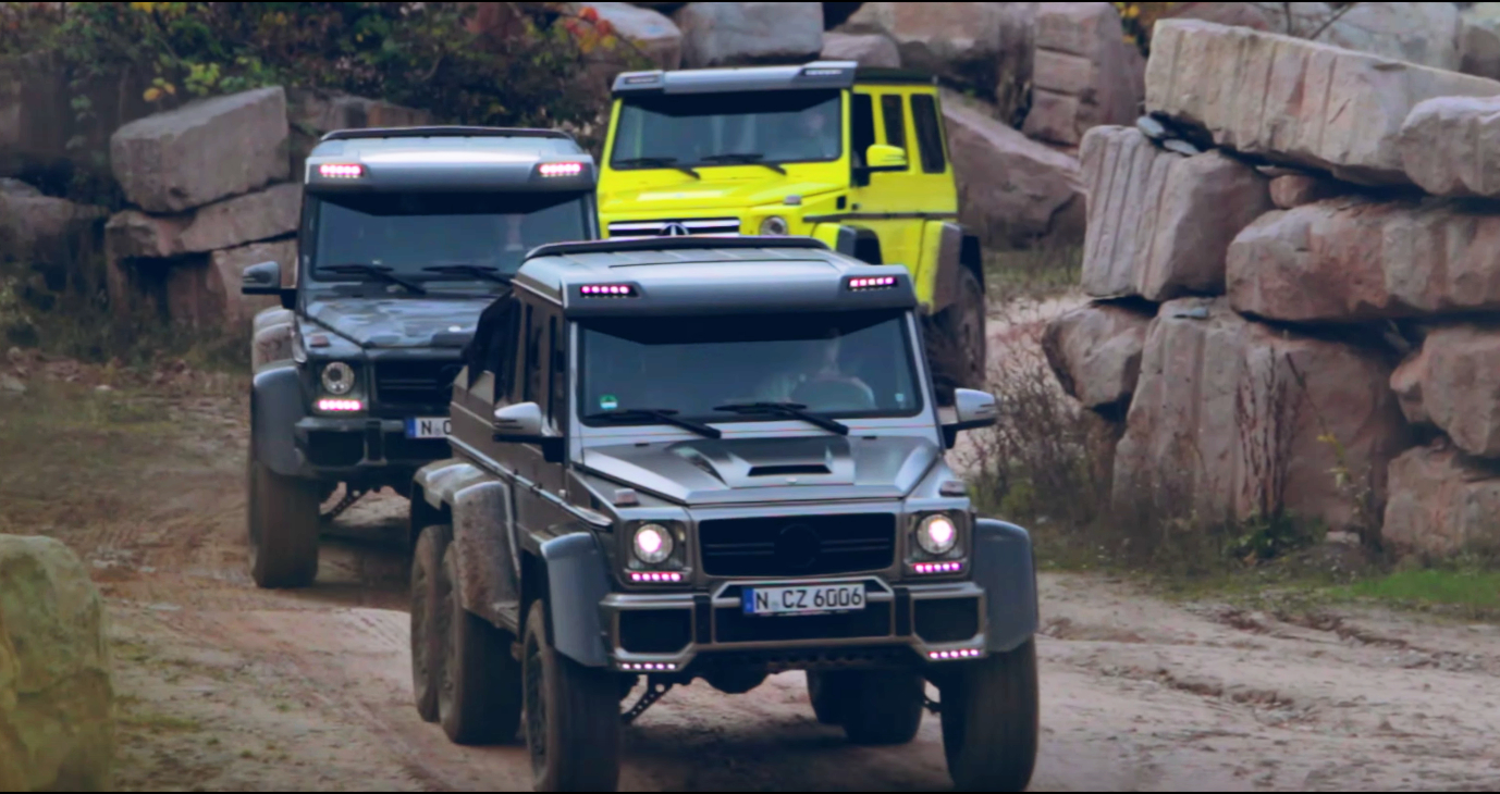 From what appears to be simply a promotional video for German auto retailer, Auto Zitzmann, comes one of the most badass German off-road videos – ever. The visual features a Brabus 700 G63 AMG 6×6, Mercedes G63 AMG 6×6 and Mercedes G500 4×4^2. All uber-exclusive vehicles that aren’t currently for sale in the U.S, unfortunately. The Brabus 700 is the most unique with a price tag close to $800,000, 700-hp and the full Brabus treatment inside and out. My favorite of the crew is the G500 4×4 as its vibrant colors, ridiculous off-road prowess and practicality (compared to the other two) would make me want to sell all my possessions and plop down a hefty payment.