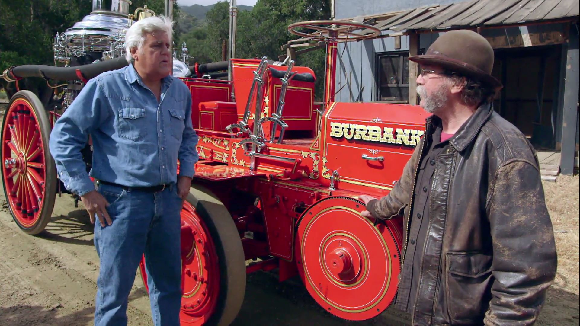 When Leno is driving the truck down a hill, “that’s just gravity-powered,” laughed the producer. “For the front-on shots when Jay’s driving at the camera, we’re just towing it. Obviously, we wanted it to run and it did, for a short time, but stuff like this does happen with 100-year-old machines. It was a bummer but the steam pump in the back still worked, so we thought we’d just move on to focus on that.”
