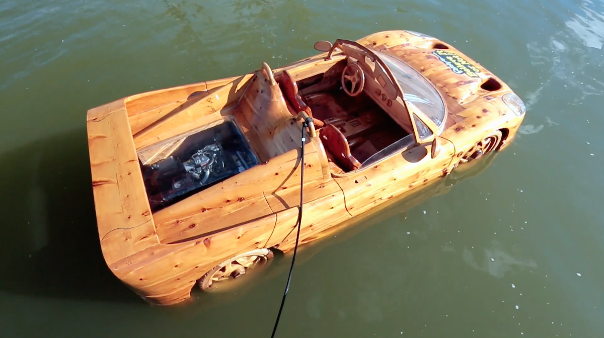 When shooting Italian carpenter Livio de Marchi’s wooden Ferrari F50 boat, owned by Ripley’s Believe It or Not, the producers were blown away by the painstaking commitment to realism. The pine boat car, which weighs 600 less than its road-going counterpart, took five months to carve. “All the detail are accurate,” said the producer. “You get in and look at the zipper behind the headrest, where the targa top comes off, and you can see individual teeth from the zipper, all hand-carved. It was nuts.”