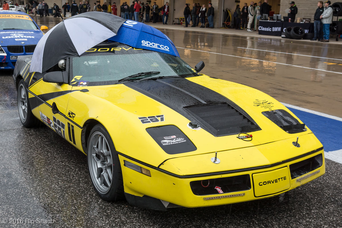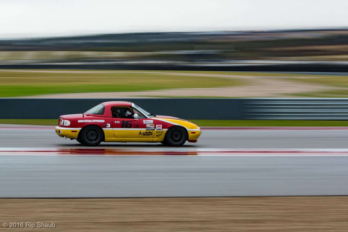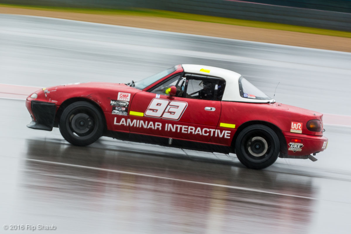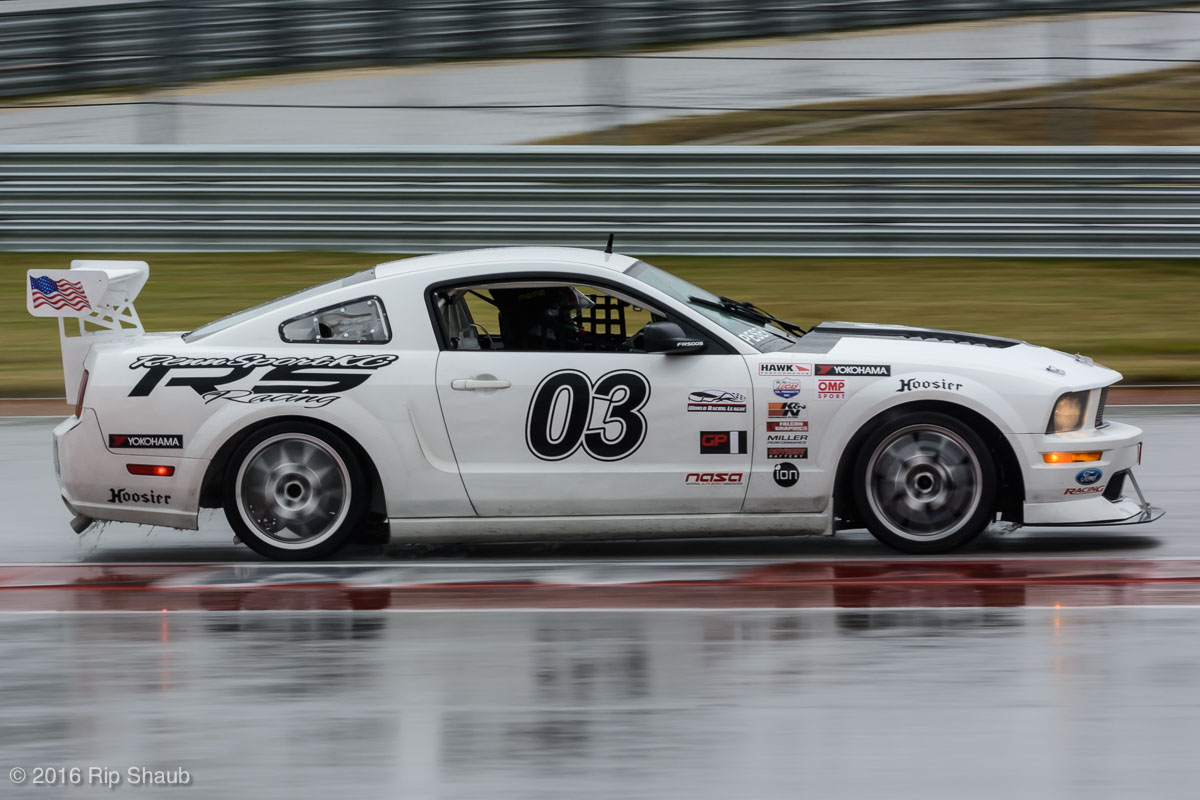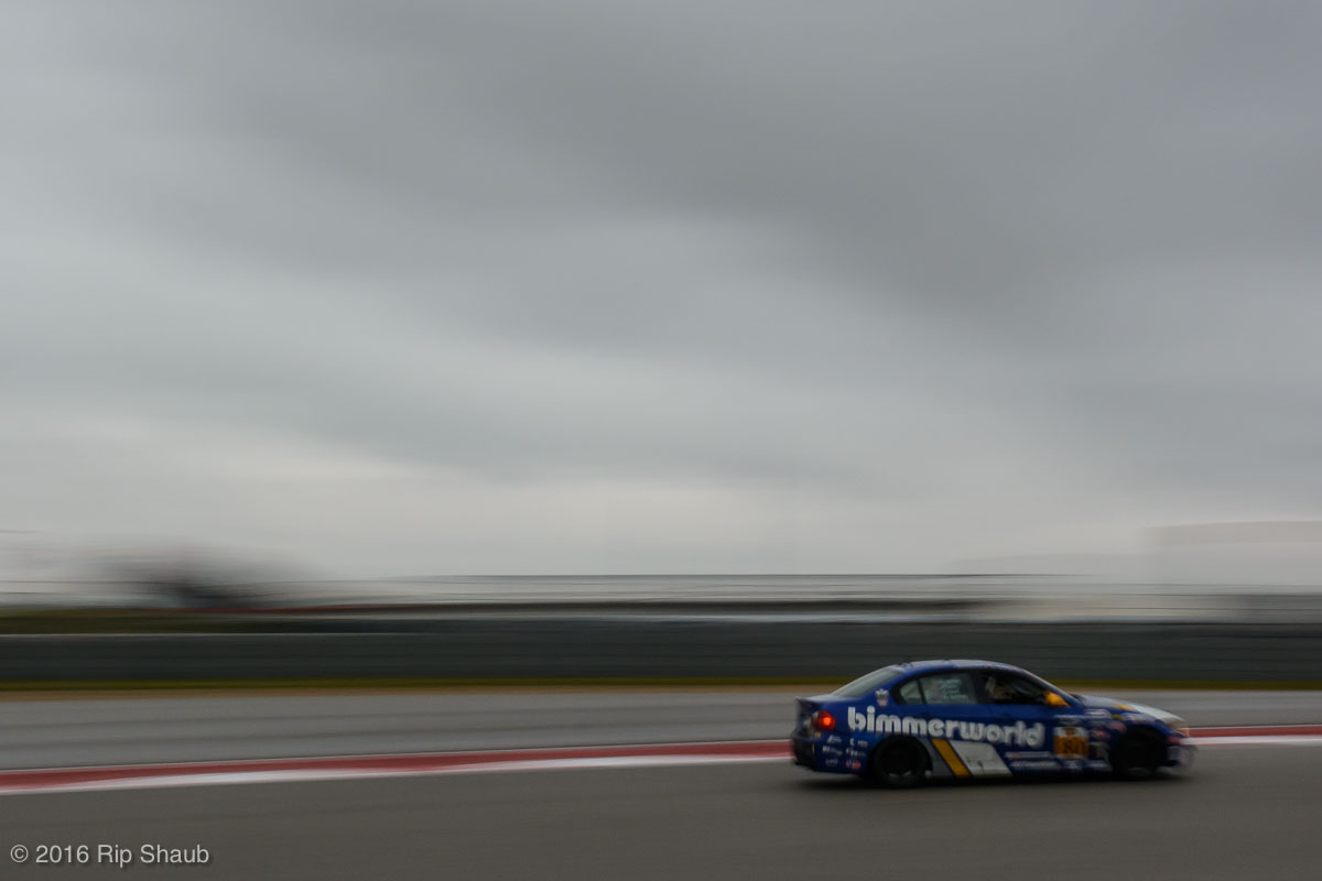 Saturday's grid features an eclectic mix of cars in 5 racing classes. Class is determined by the entry's power to weight ratio. GP1 for the highest rated to GP4 for the lowest. The additional GPX class featured 3 cars whose power exceeds the top class but were cleared to participate.While the grid waits for a break in the rain to get started, drivers find ways to keep the cars dry. The Steadfast Poorvette, and other open cockpit cars, tried hard to keep the cockpits comfortable before the start.Beanito Beandudo's 1970 Triumph TR6 from GP4 has the extra challenge of avoiding overheating while waiting to get underway. The car was ultimately fine and survived to finish both days.Vess Motorsports brought this BMW M235ir that competed in GPX. Conditions were soupy all weekend, but the BMW had no problem slicing through the heaviest rain. The 72 car was the overall leader, completing 145 laps on Saturday and 147 on Sunday.McNeil Motorsports Toyota Celupra hybrid brought amusement and bewilderment each time it passed. They went on to complete 120 laps on Saturday before recording a DNF.Cool G Racing brought this terrific looking 1972 Datsun 240Z to COTA. They completed both days' enduros in style.Roadkill Racing's 1997 Miata heads for Turn 10. The GP3 class is mostly Miatas, and WRL is working on a partnership to bring the SuperMiata series to the eastern part of the US.The mixed classes mean plenty of passing during the races. Here, five cars crowd into the tight confines of Turn 15 on Saturday.SCR Performance's 2013 Subaru BRZ finished 3rd in class on Saturday, but did not compete on Sunday.Outside the garages were countless fuel jugs all weekend. Rules prohibit storage of fuel in the garages and that means a constant shuffling of full and empty jugs from the paddock to pit lane.RRW Motorsports Miata recorded a DNF both days, but not before completing 237 laps over the weekend. Here the shark attacks Turn 11 with ferocity.The weekend's other BMW M235 plows through some of the heaviest rain on Saturday. This car went on to record the fastest lap time of the weekend in Sunday's racing and finished second in GPX to its teammate on both days.EcoBooze's '89 Fox-body Mustang finished 1st in GP4 Class on Saturday and 4th on Sunday. Here it throws lots of spray as it enters the main straight fresh out of Turn 20.Al Mallory Racing's 2008 Corvette finished 5th in GP1 on Saturday, but DNF on Sunday after 7 hours and 125 laps.The rain slowed for a for a few minutes, but the conditions were still soaking wet mid-day Saturday. A crowd launches out of Turn 20 and heads down the main straight and up the hill into Turn 1.Z-Ya's 1973 Datsun 240Z streaks through one of the wetter parts of the stadium section of the track.The flat black of the Poorvette's rear clip absorbs light like a black hole on an already gloomy day. It leans hard in Turn 15 on its way to win the GP2 class on Sunday.Endurance racing means frequent pit stops for fuel and driver changes. These aren't the frenzied and choreographed pits of F1 but still provide an energetic interlude from the on-track action.Lemonata Racing's 1990 Miata sported a Sprint Car-like panel over the cockpit, providing a measure of relief from the rain. They went on to finish 3rd in GP4 on both days.RennsportKC's 2008 Mustang was a DNF on Saturday, but bounced back to win GP1 Class in Sunday's race.White Lightning's 1994 Miata spits a little flame as it heads for Turn 3. It's the only Miata that competedin the quicker GP2 class and finished 5th in class Sunday after a DNF on Saturday.With all-day racing, garages are as much apartments as workshops. Teams share space with four cars per garage and things can get cramped quickly. Fortunately camaraderie among teams prevails throughout the weekend.Huskers1's Miata had a strong showing, placing 3rd on Saturday and 2nd on Sunday in the GP3 class.Skid Marks Racing's Nissan 350Z takes it's turn through the wetness betweens Turn 12 and 13. They finished with 133 laps on Saturday, but had a DNF on Sunday after 3 hours on the track.Mid-race and between-race repairs were, at times, major. Engine swaps and body part replacements happened along top-end rebuilds and suspension repairs. Bucket List Racing's Boxster would succumb and was a DNF on both days, but not after logging over 11 hours on the track and more than 650 miles.The Sector Purple and Minions In Charge Miatas race up the short hill to Turn 9 on Sunday. Sector Purple took 2nd in GP3 on Saturday.The Vess M235ir again. Normally's Austin's skyline would be visible in the distance, but the gloom messed with COTA's traditional views the city. The 72 car was 8 short of logging 1000 miles of racing for the weekend.The Laminar Racing Miata won the GP3 class both days, en route to becoming the 2016 season's US Endurance Champion. Drivers logged more than 15 and a half hours racing for 940 miles.Team LMR's BMW 328i shows us just how gloomy the skies were in Austin on Saturday. They didn't feel the effects much, though, finishing 2nd in GP1 on Saturday and 3rd on Sunday. The other LMR entry, another 325i which was 15 years older, fell victim to a blown engine halfway through Saturday. The team was prepared to swap the engine overnight, but a suitable replacement couldn't be secured in time.OHWOWRacing illustrates how knolling is an essential part of any good shop work as they tackle the top end of their Mustang's engine. They completed 45 laps on Saturday before hitting trouble, and only completed an hour on Sunday before recording their second DNF.Zombie Response's Ford Escort Zx2 looks as if it mowed down a pack of the undead on the back straight. The zombies got the best of it after almost 6 hours on Saturday, but the team and car recovered to finish Sunday's race.Team McQueen brought a pair of Nissan 240SX entries to the track and they finished 3rd and 5th in class on Saturday. Both cars failed to complete the race on Sunday, with this #95 one falling just a half hour short of