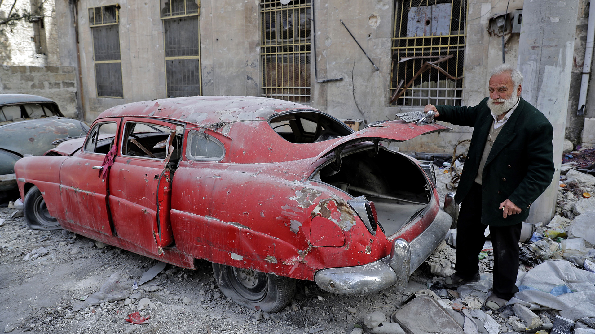 The daily barrage of terrible news coming out of Syria has sadly faded from the headlines as the war drags into its sixth year, with most of the country already in ruins. But there are still stories that need to be told—like that of 70-year-old Mohammad Mohiedine Anis, a classic car collector from Aleppo who had managed to stockpile thirty pieces of vintage American iron and steel before the war broke out. After being forced from the city late last year, he recently returned to find he’d lost more than just his home—ten cars were totally destroyed, and the rest badly damaged from the intense urban combat.