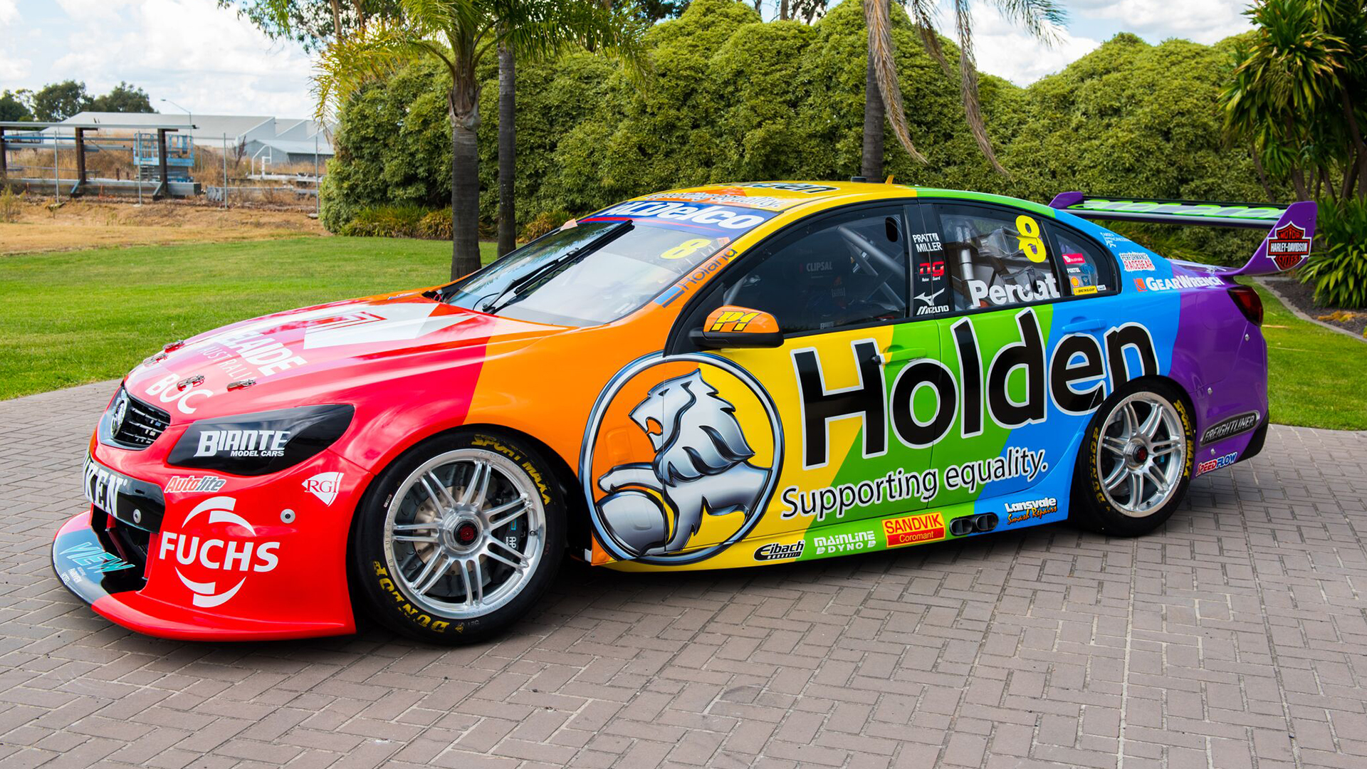 The unmissable rainbow colours on the #8 Holden Commodore is all about supporting equality of people, no matter their race, gender or sexual preference