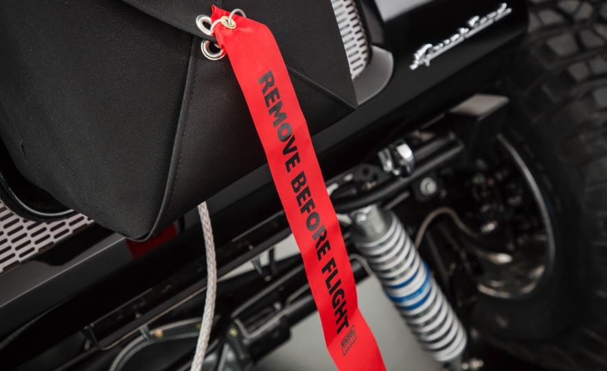 One thing is for sure—it’s different. It’s a styling statement that you can either love or hate, but you can’t deny its uniqueness. The stacks coming out of the hood remind us of old Gasser drag racers while the missing fenders show off its off-road demeanor. The compressor tank mounted up front is a trick touch that adds more to the picture as a whole, and it neatly matches the Warn winch as well. The stripped down body represents a bare-bones ethos that we kind of dig, reminding us that manufacturers still care about enthusiasts, too.