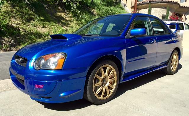It’s even in the right color. This STi’s World Rally Blue paint pairs perfectly with the golden BBS wheels, harkening back its glory days of racing. The Brembo brakes are also painted gold to match, completing the clean aesthetic package of the low-mile JDM star.