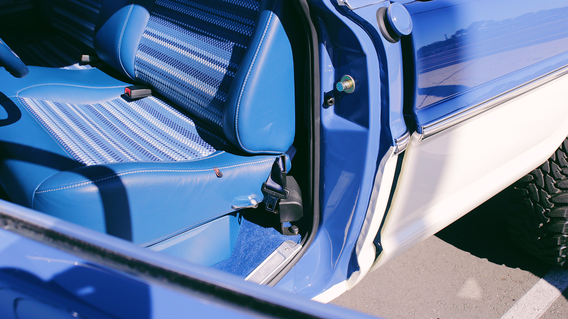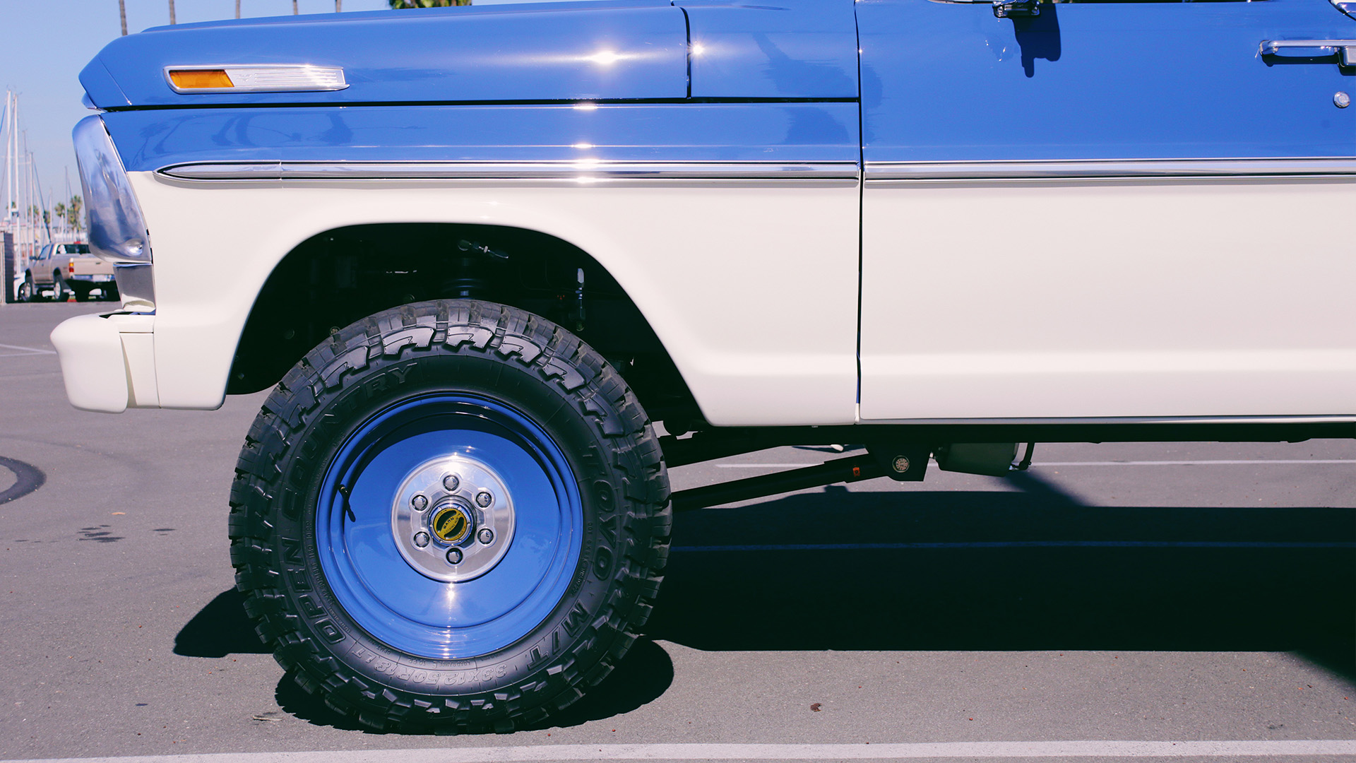 The two-tone paint is laid on thick, and color-matched Detroit Steel wheels really set it off when paired with big, 33-inch Toyo Open Country tires. Their only downside is they don’t show off its massive, six-piston Baer fixed brake calipers with matching drilled and slotted 13-inch rotors, though these would probably steal from its intended aesthetic. It’s a balancing act, after all.