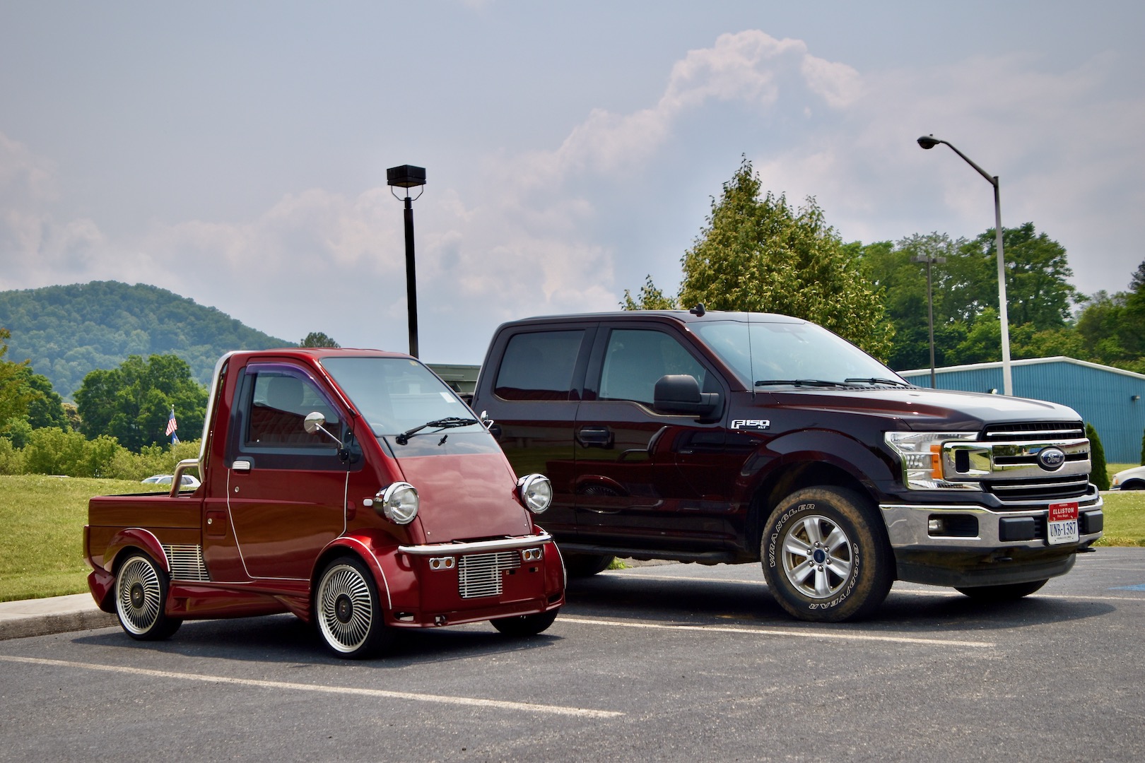 The general public doesn’t really care about cars. It’ll perk up if something unusual comes along, though. A rat rod, a DMC DeLorean, a Lamborghini Aventador. All things it understands, and can identify with reasonable Is that a Ferrari? accuracy. A straight-piped dekotora 1997 Daihatsu Midget II, however, is not something the public understands. Americans have no reference point for what it is; they turn their heads and stare, mouths sometimes agape, their expression obvious: “What the hell is that?”