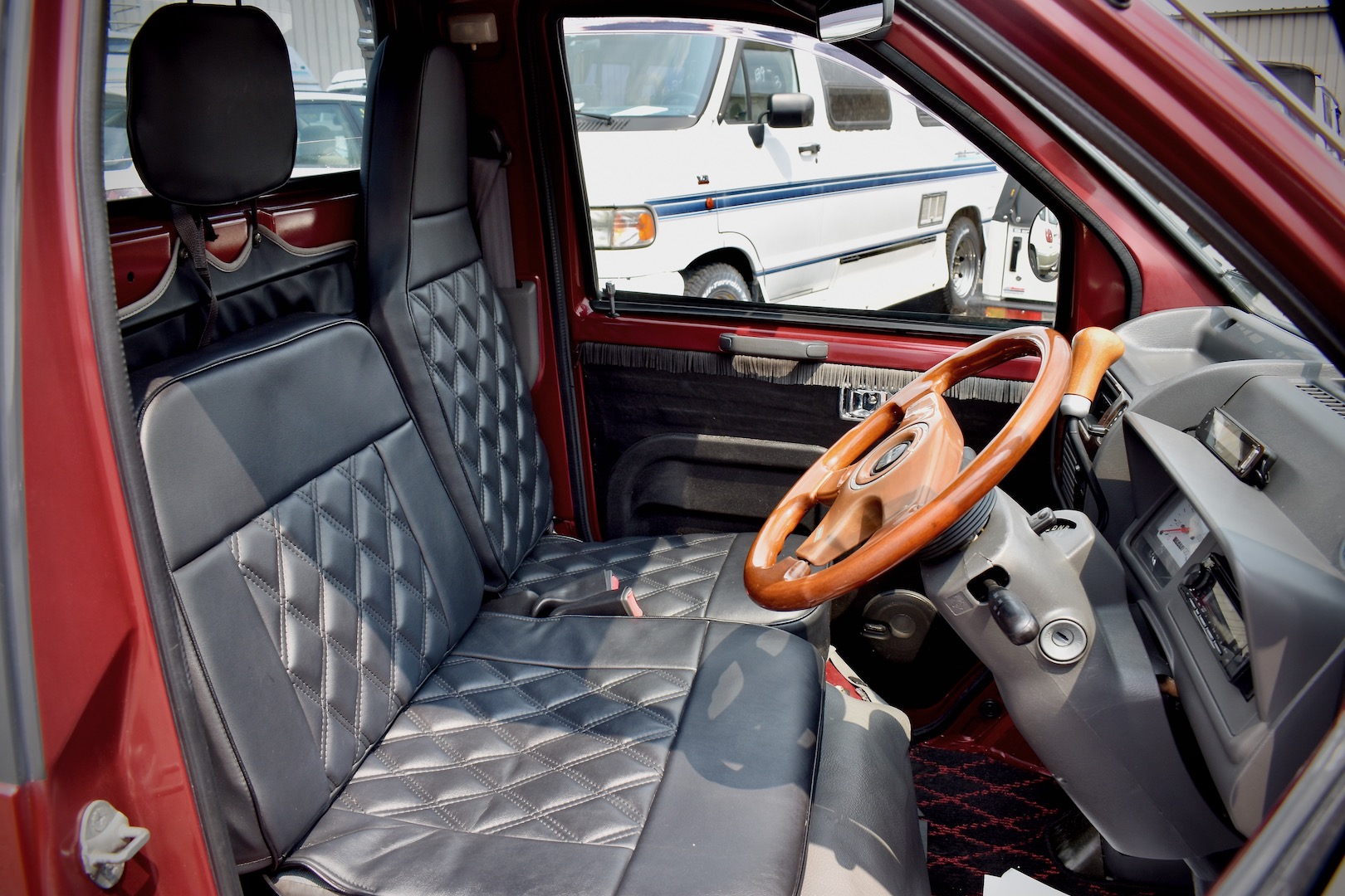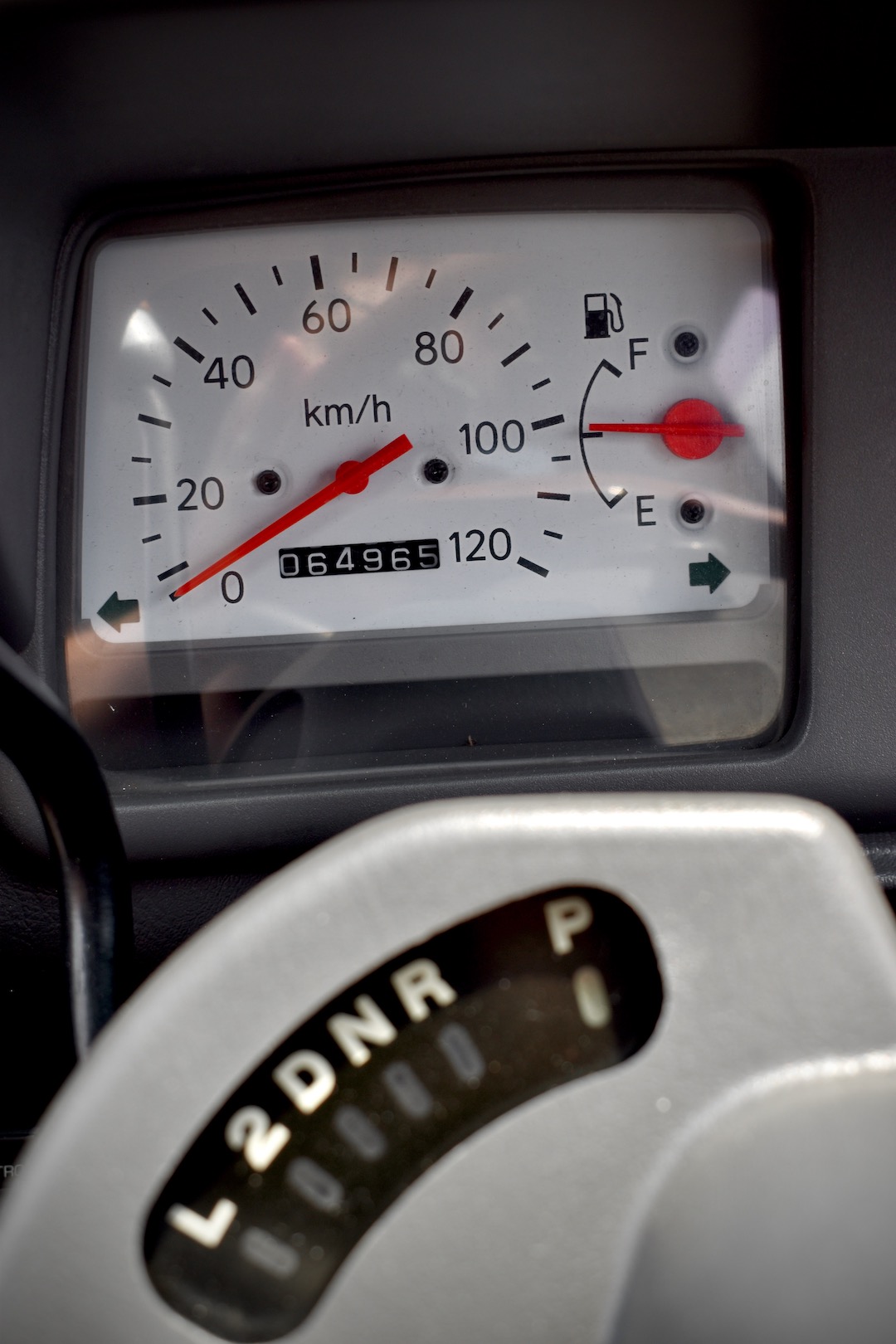 It weighs only 1,213 pounds though, which allows it to get nearly 60 mpg at 35 mph. It can tote around a payload of 331 pounds too, and its size means there’s no street it can’t drive down—ideal if you run an alleyway bar. Its brakes are drums all around, and a booster wasn’t included at launch. Brake fluid is added through a filler in the dashboard, and there’s no temperature gauge or tachometer. Just a fuel gauge and a 120-km/h speedometer, when most kei cars show 140 (or about 85 mph).