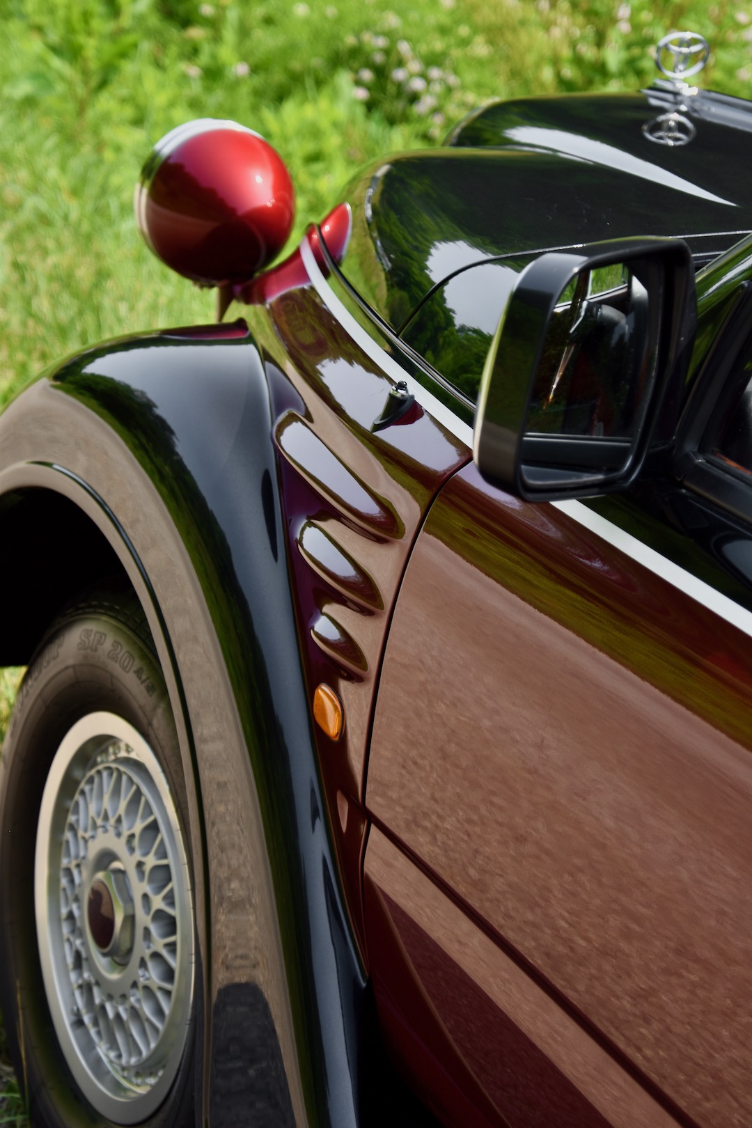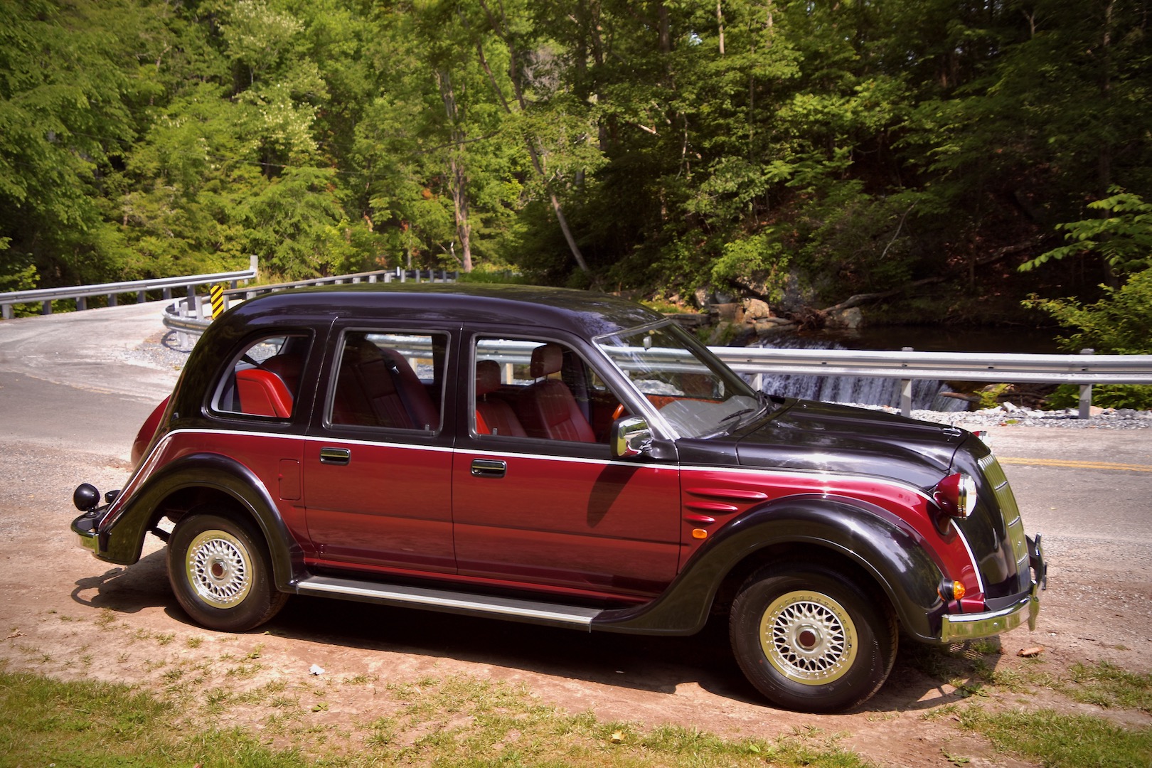 But you’ve got truck-sized side mirrors to fill the gap, and your view out as you drive is that of an old car. You scan the road over a real wood Nardi steering wheel and a hoodline straight out of the ‘30s; it passes for a classic out of the corner of your eye. It drives like the cars of yesteryear too, but not enough to make it unpleasant.