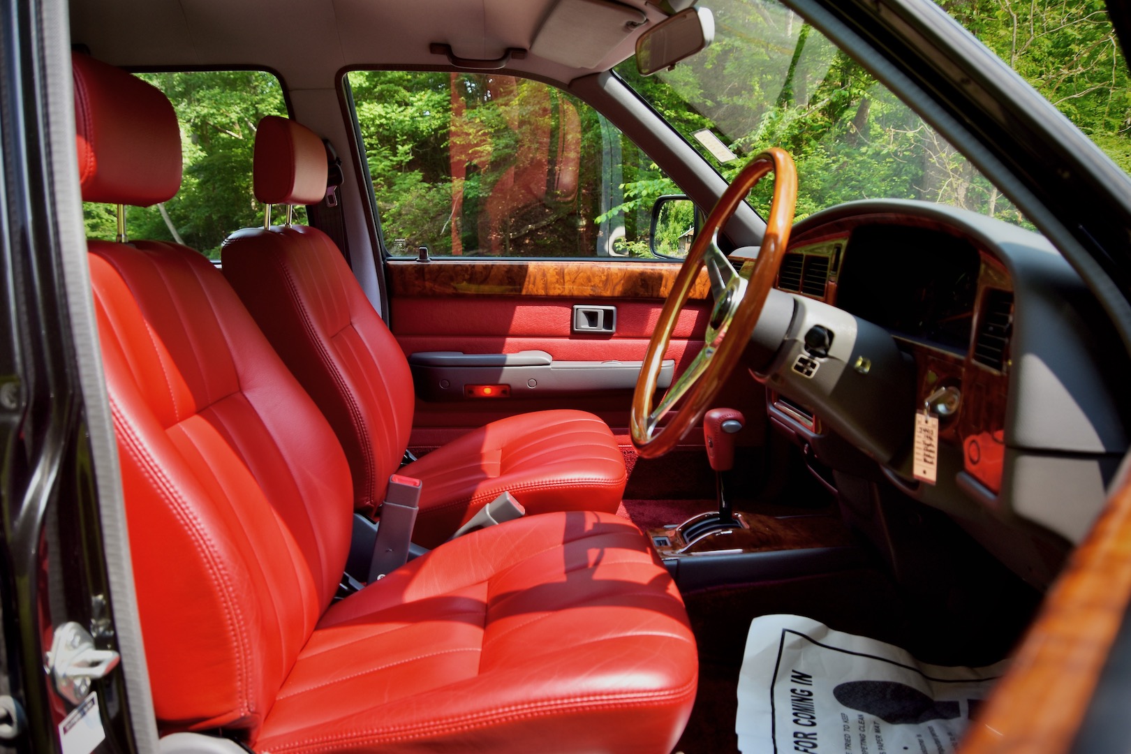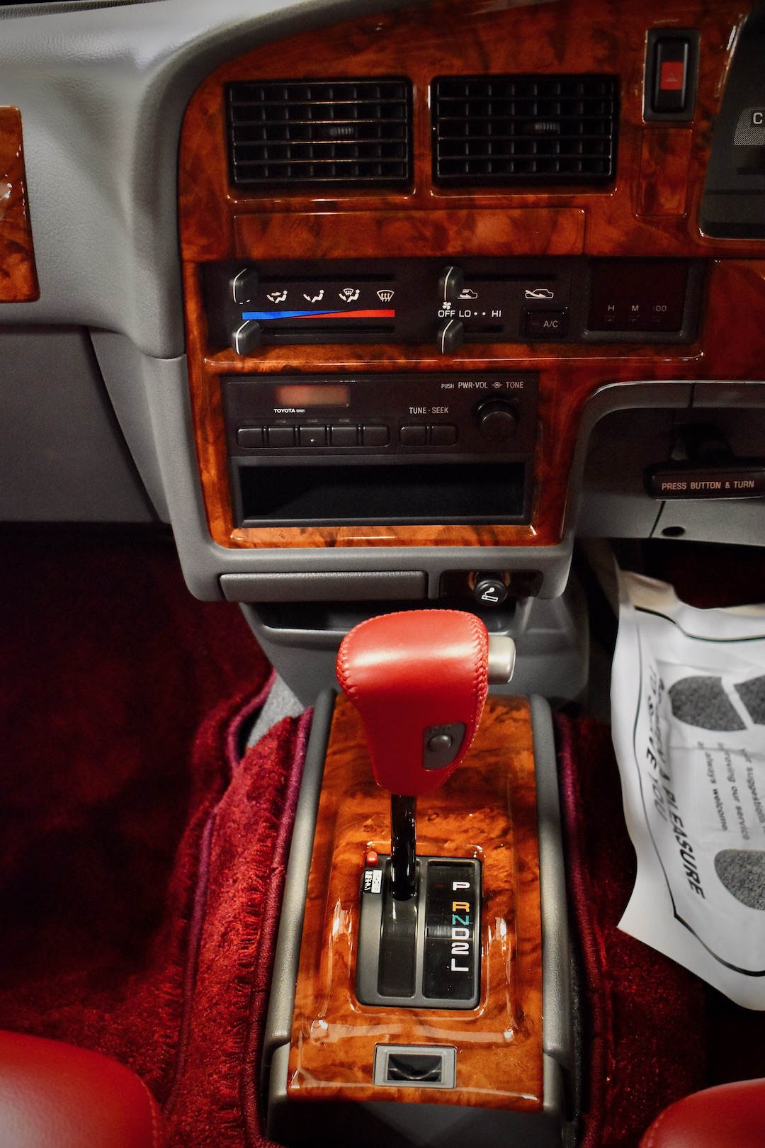 You’ll be met by more bright red leather than my average Friday night, and unmistakable ‘80s Toyota Pickup plastic trim and switchgear. The shifter is a center console-mounted prindle with an annoying shift lockout, while the dash is a simple three gauges without so much as a tachometer. Its entire dashboard is visibly identical to a Hilux’s and differentiated only by the fakest wood you’ve ever seen outside, like, a PT Cruiser. If anything, it’s even tackier than the Chrysler.