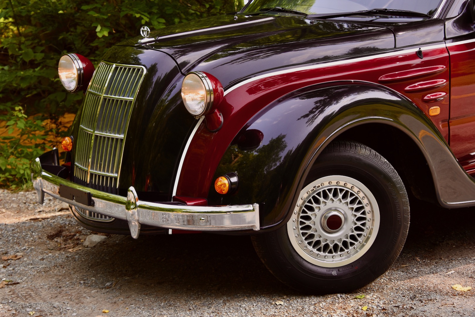 From any distance, the Toyota Classic looks as old as its muse, its body channeling primitive streamlining perfectly. Still, there are strange touches, like its fake front fender vents and obviously ‘90s multi-piece alloy wheel. They’re not that obvious though, and the Classic is a convincing enough prewar pastiche to pass as one. At least, until you walk up and see the interior.