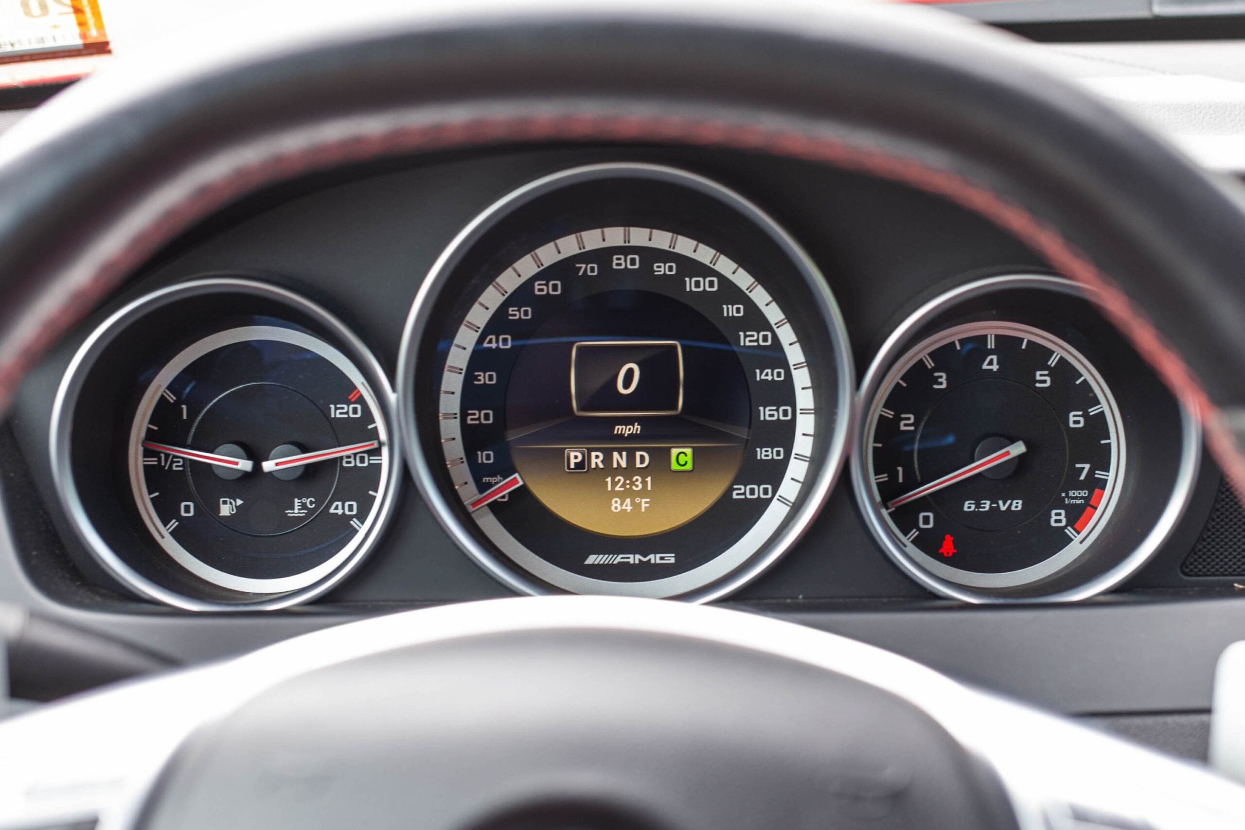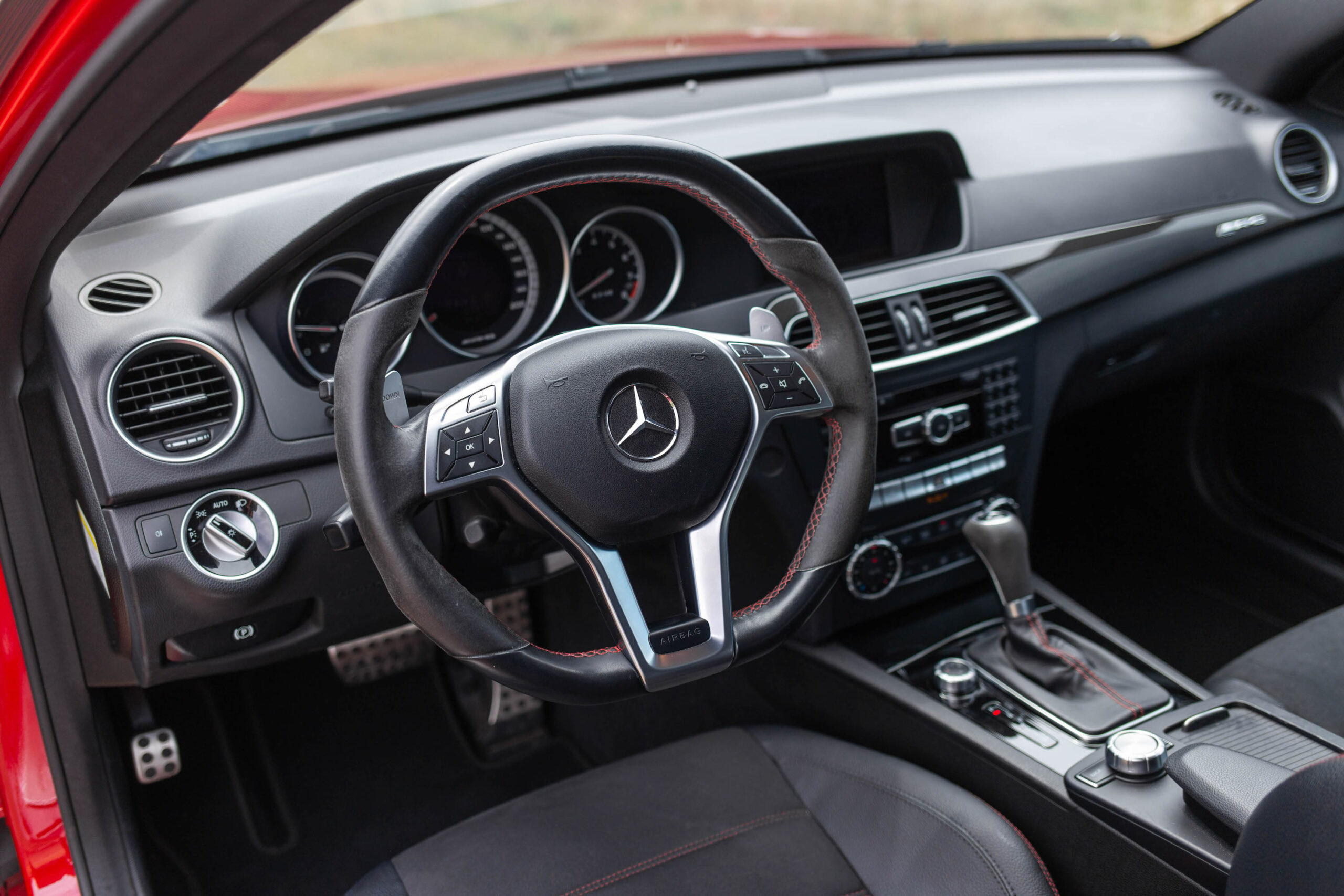Inside, red seat belts and red stitching decorate a relatively low-key cabin. After 10 years of ownership, this particular example shows its age a bit in how the Alcantara on the steering wheel and gear selector lever has worn down. (I am single-handedly winning the Alcantara wars.) All of the gauges are analog, with the exception of the digital speedometer. The front bucket seats, though bolstered, still manage to be comfortable and supportive, and though most C63 Black Series cars came as two-seaters, you could option them with four seats. Overall, though, the interior eschews the blinginess that coats Mercedes-AMG innards of today. There’s form, yes, but it’s more about function.
