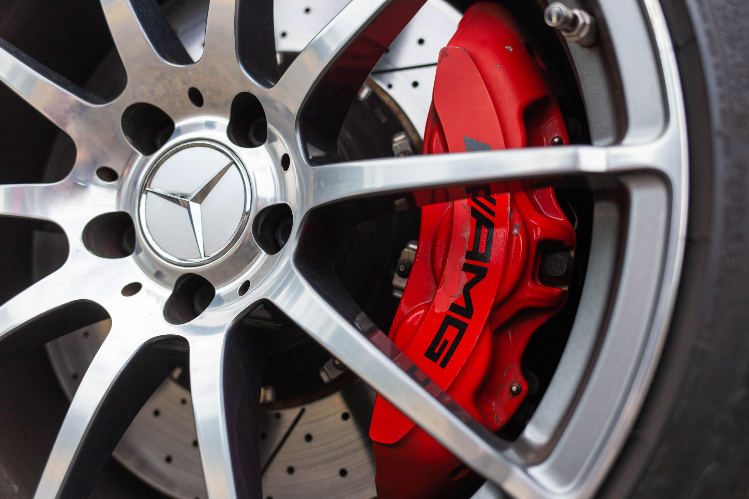 Gone is the hood ornament, replaced instead by the three-pointed star that’s as big as your hand. The square-jawed lower bumper juts forward almost like a bulldog’s underbite, and the fender flares are wide enough not only to serve as a park bench, but also as a great place to land an amber reflector. There’s a black rear diffuser, a carbon lip spoiler, and forged 19-inch alloy wheels. Curiously, though, certain vents such as the ones behind the fenders, don’t appear to lead anywhere.