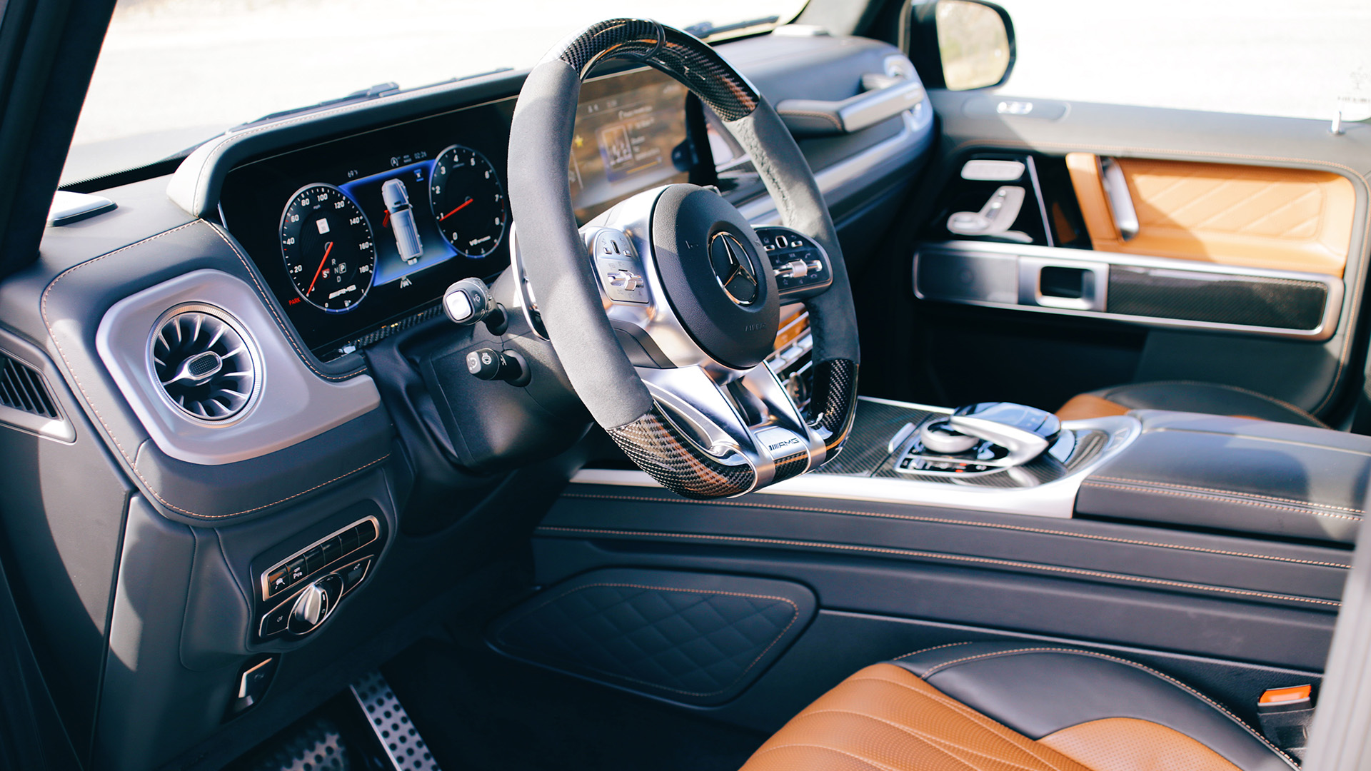 While the lower-tier G550 might beat out the G63 in off-road capability, the AMG special sauce makes for a more thrilling and all-encompassing experience. It starts at $156,450, but my tester had a healthy helping of options added on, such as its Monza Grey Magno paint ($6,500), Saddle Brown leather ($400), and AMG carbon fiber interior trim ($3,700).