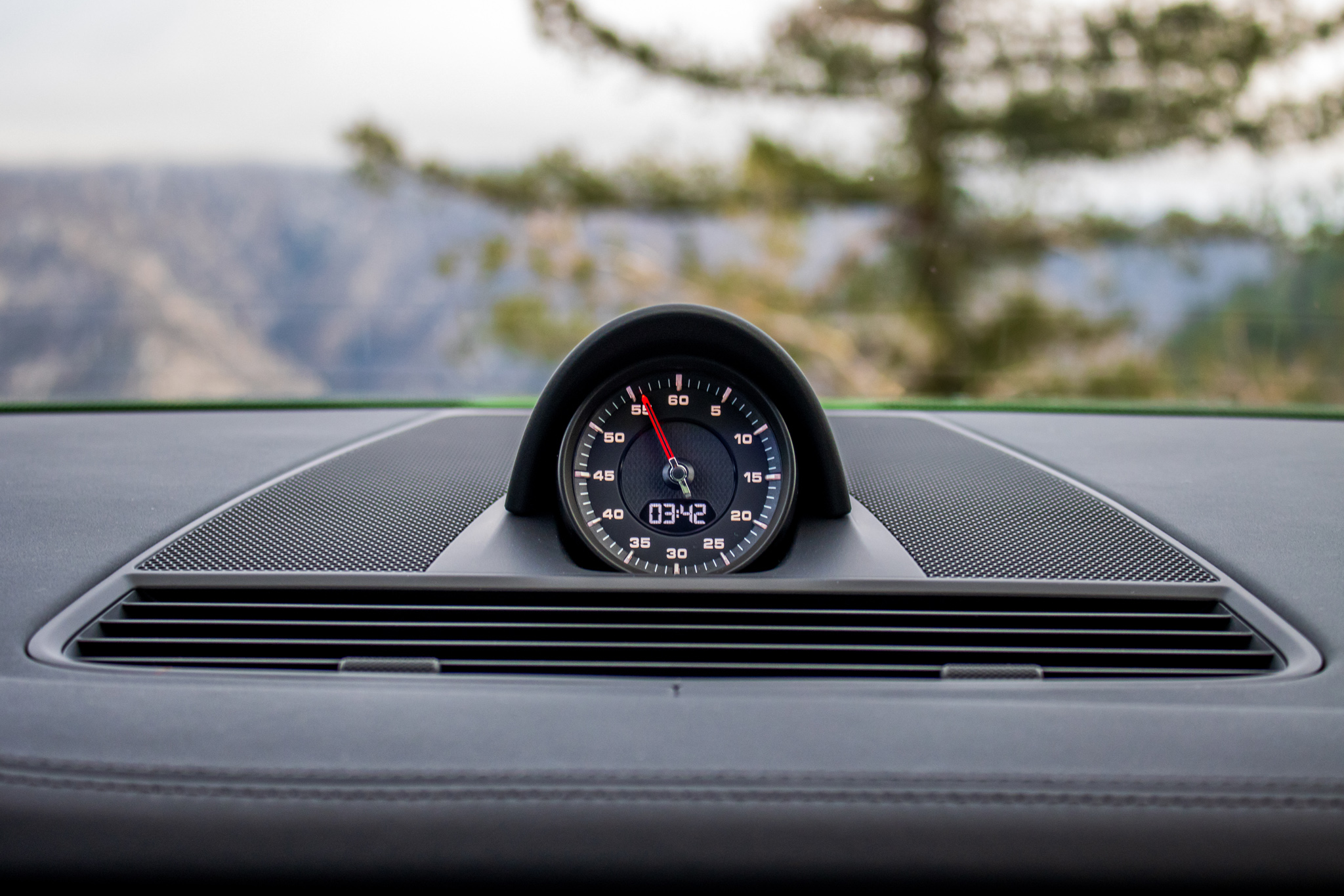 Brakes on this particular car are the optional mirror-finish Porsche Ceramic Composites, and the six-piston calipers gripped strong and true with no hint of fade over a two-hour spirited drive through Angeles National Forest. They’re another must-add despite costing nearly $9,000—so often on these not-quite-track models, the standard brakes are a weak point.