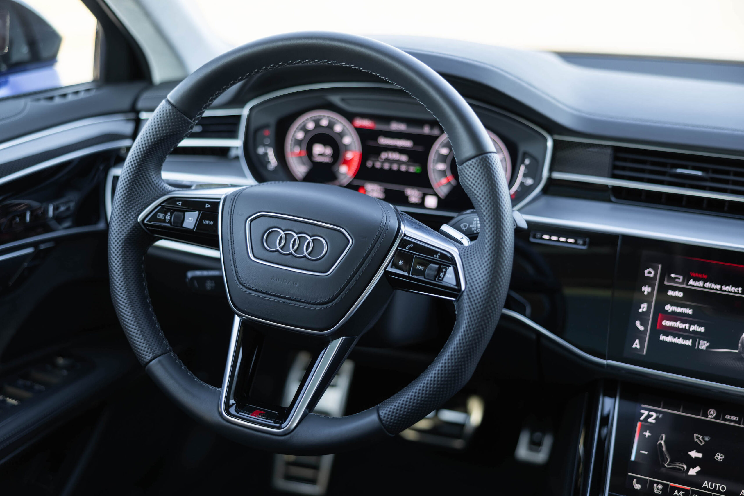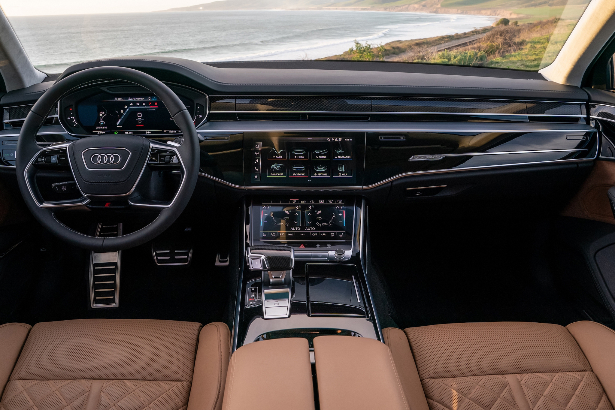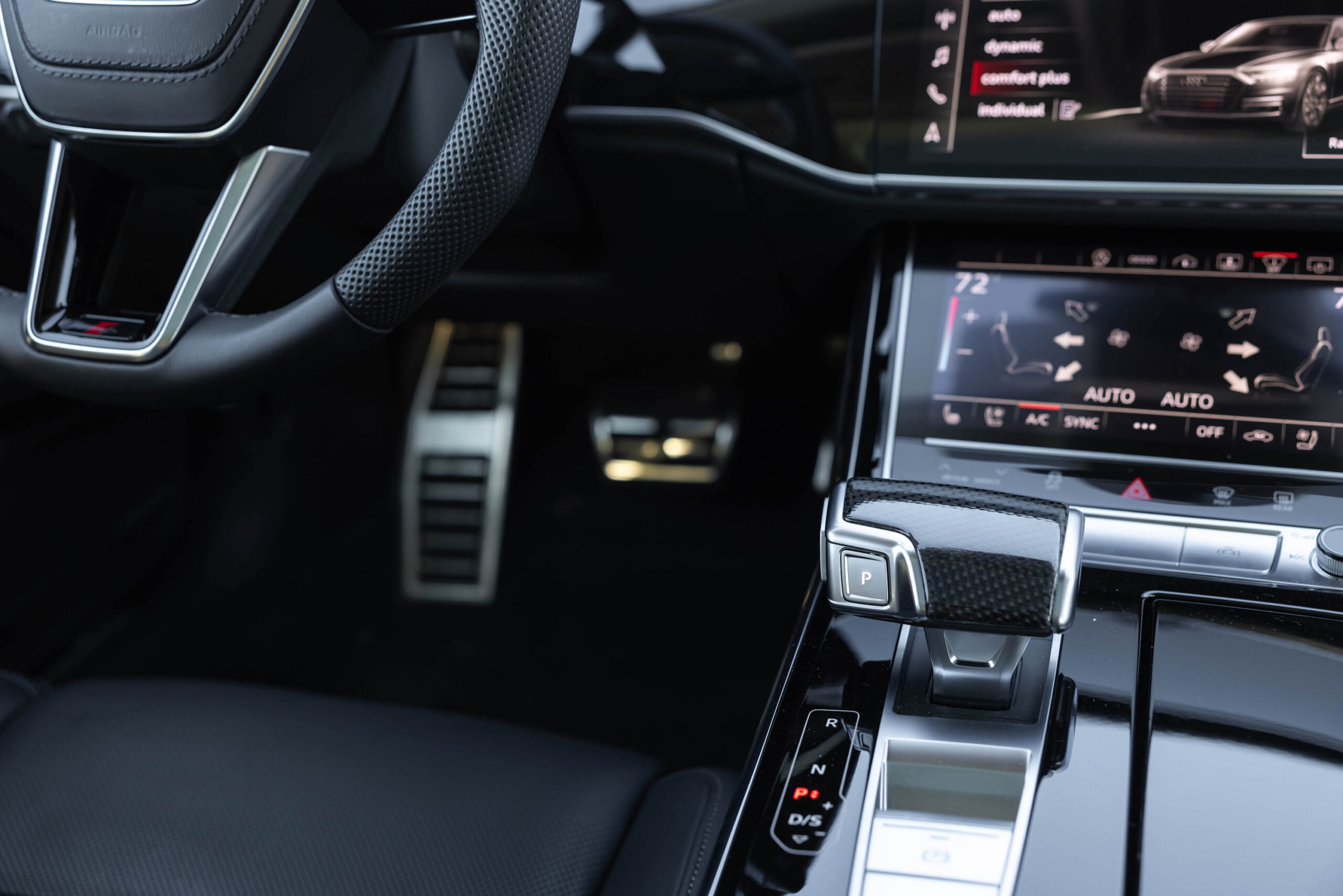 You’d be forgiven for being unable to tell the difference between the refreshed S8 and the one it replaces though, as it’s nearly unchanged. Only the headlights are slightly different and the interior layout is basically the same. There, you’ll find two stacked MMI touchscreen displays, a sea of quilted leather, and way more piano black trim than I’d prefer.