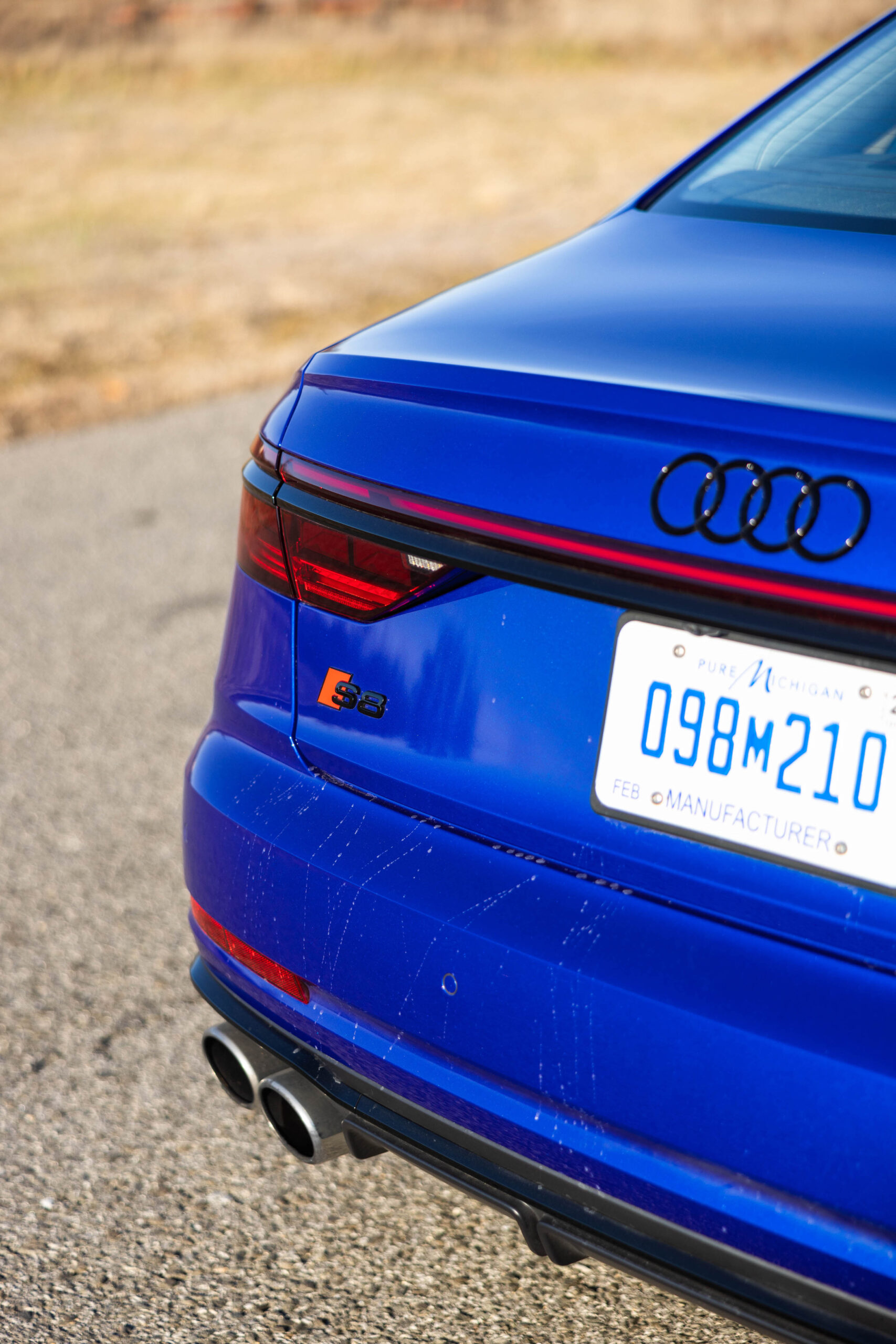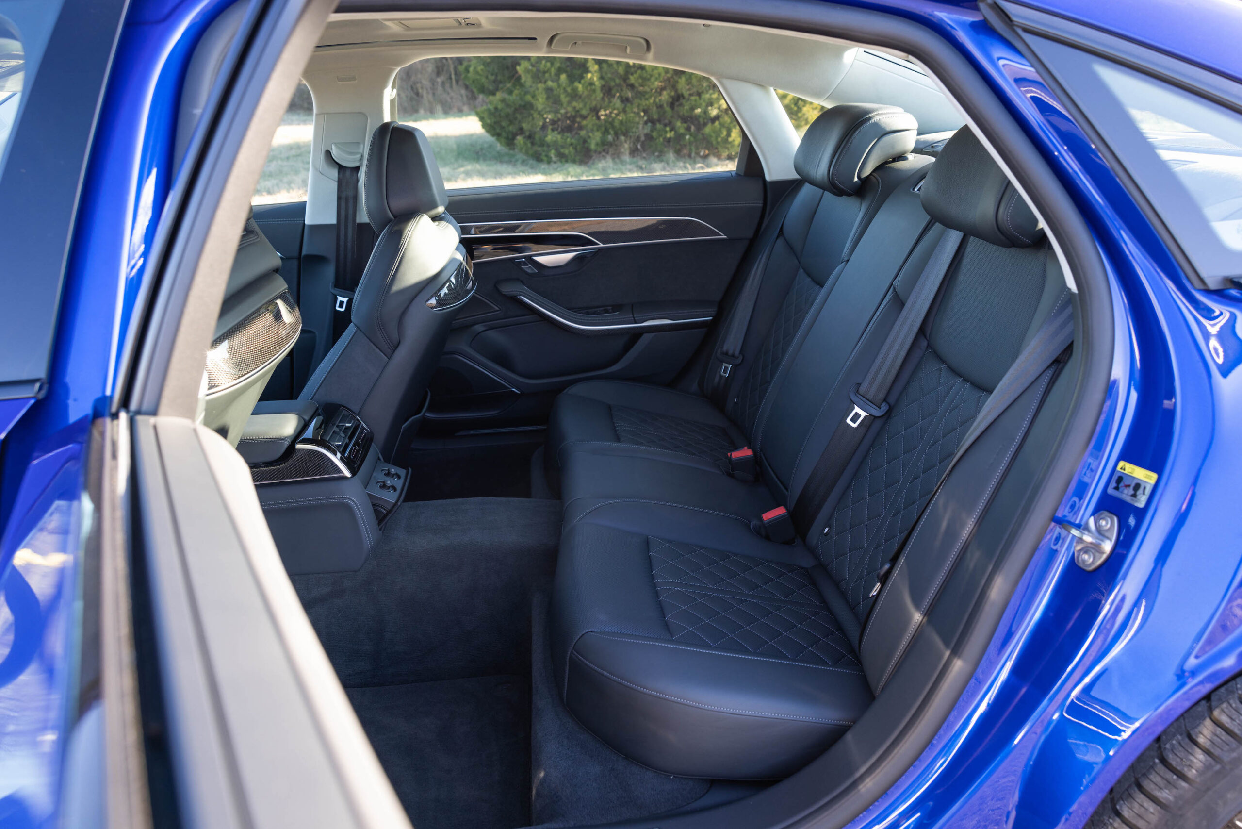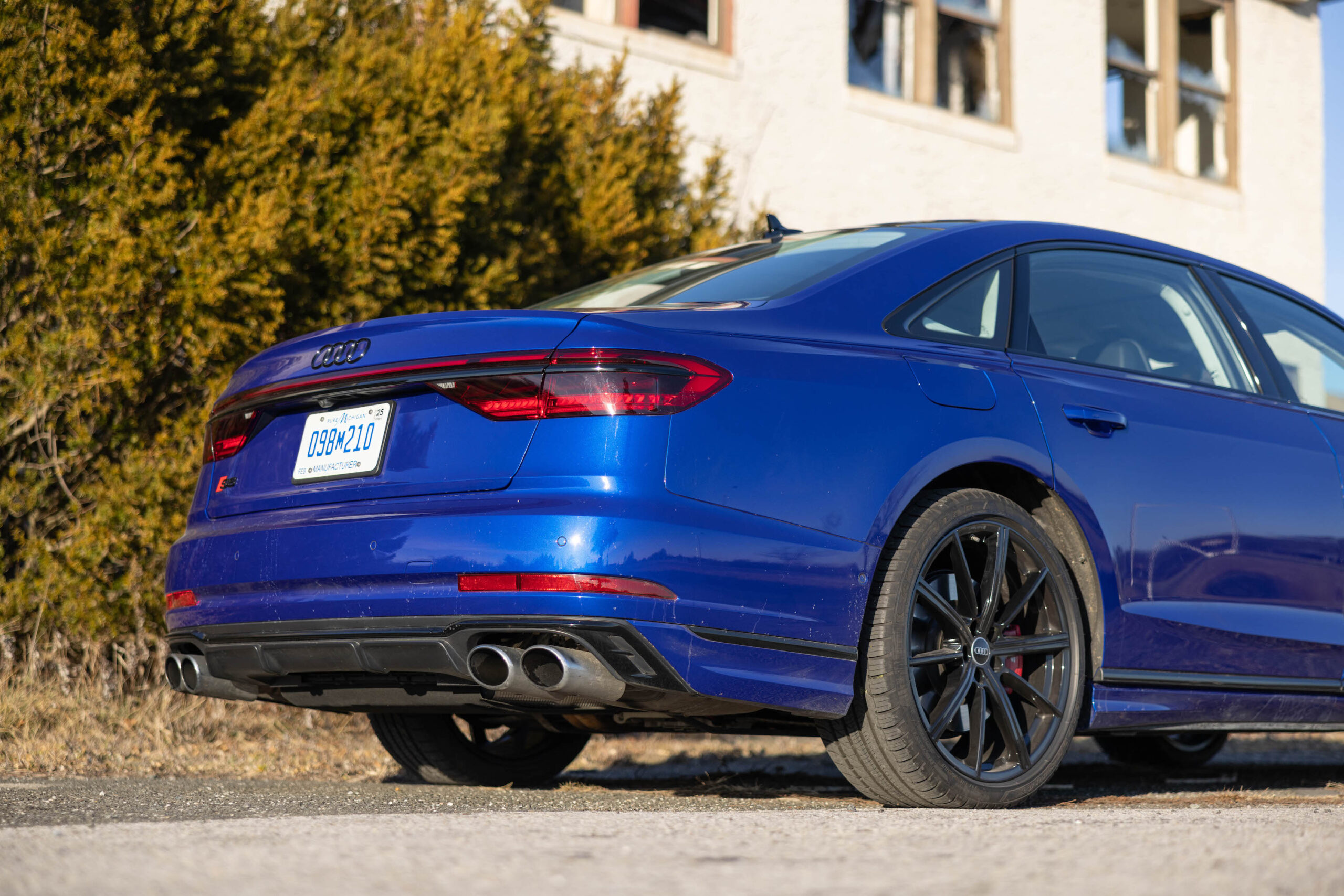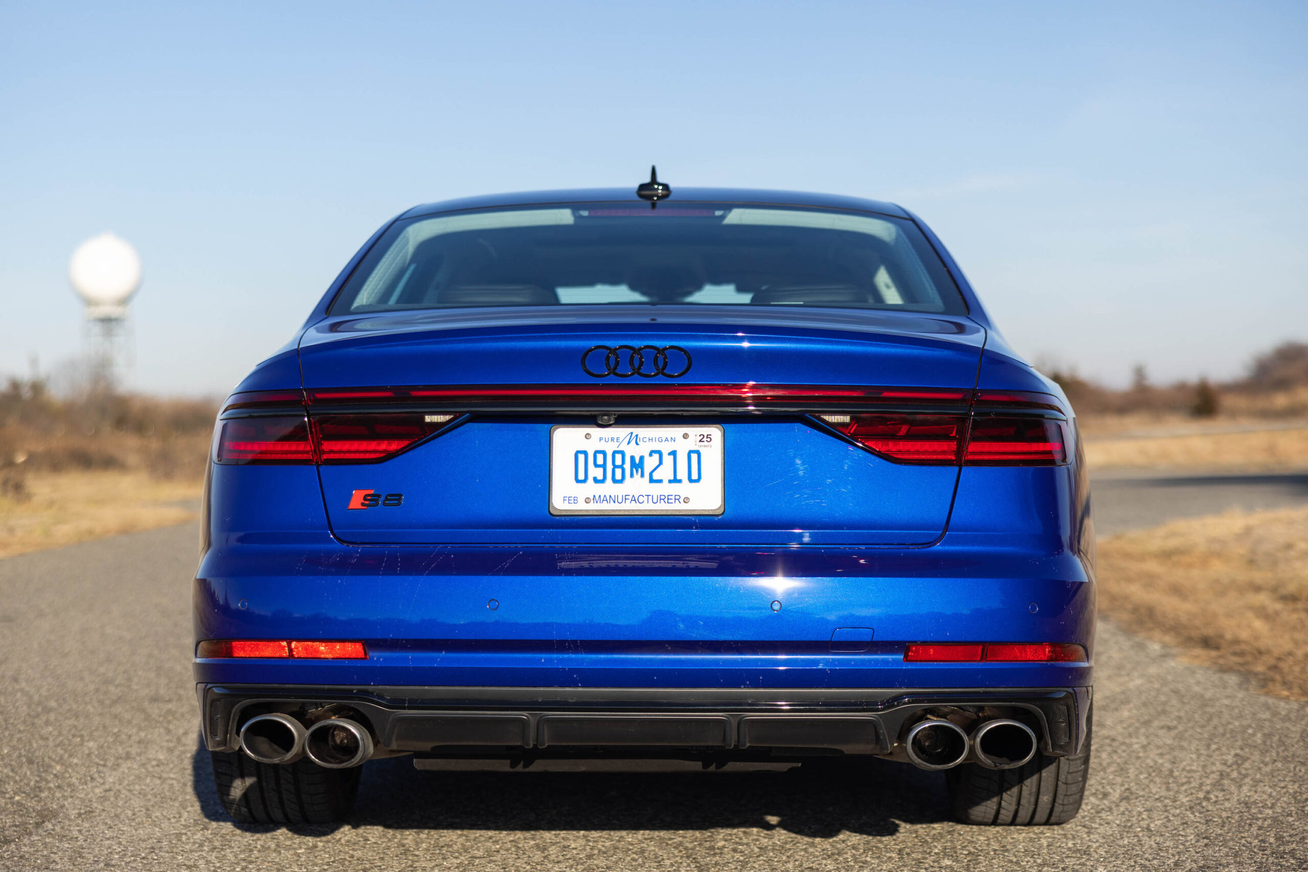 Base S8s come with the V8 and all-wheel drive, but also with 20-inch wheels, all-wheel steering, adaptive air suspension, dual-pane windows, heated front seats and armrests, and front-seat ventilation and massage. Starting MSRP comes to $121,595. The test car had quite a few add-ons; namely, predictive active suspension ($6,000), the comfort plus package (heated rear seats, head-up display, and extended leather package for $4,700), the executive package (21-inch wheels, adaptive cruise control, and traffic sign recognition for $3,800), and the black optic package ($2,100). All told—including the $1,000 gas guzzler tax and the $1,095 destination charge—the test car’s MSRP came to $135,595. If it were me, I’d lose the comfort plus package. The black optic package is a must, though, because it looks sick. Shiny, silvery chrome is out. Haven’t you heard?