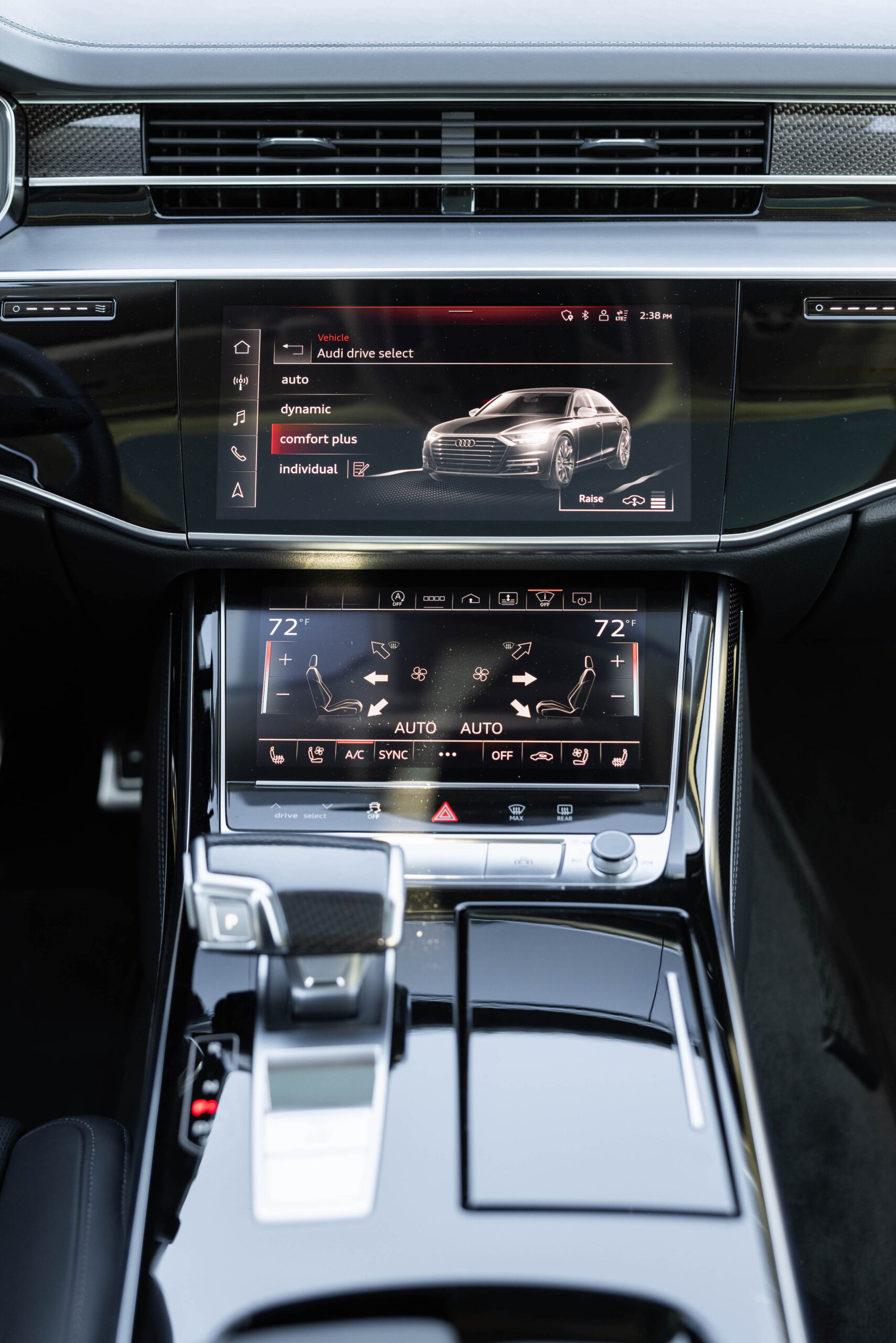 I didn’t love the car’s touchscreen interface—MMI haptic feedback or not—because using it still involved taking my eyes off the road. And despite much searching, I couldn’t locate how to toggle between the car’s driving modes except through a menu on the touchscreen. I get the S8 isn’t your typical backroad carver, but I still think driving modes should be relegated to physical knobs or buttons. In stop-and-go traffic, the transmission and auto stop-start could have been smoother, with the former returning sporadic, shuddery downshifts and the former unable to determine whether I was coming to a complete stop or just following the flow of gridlock.