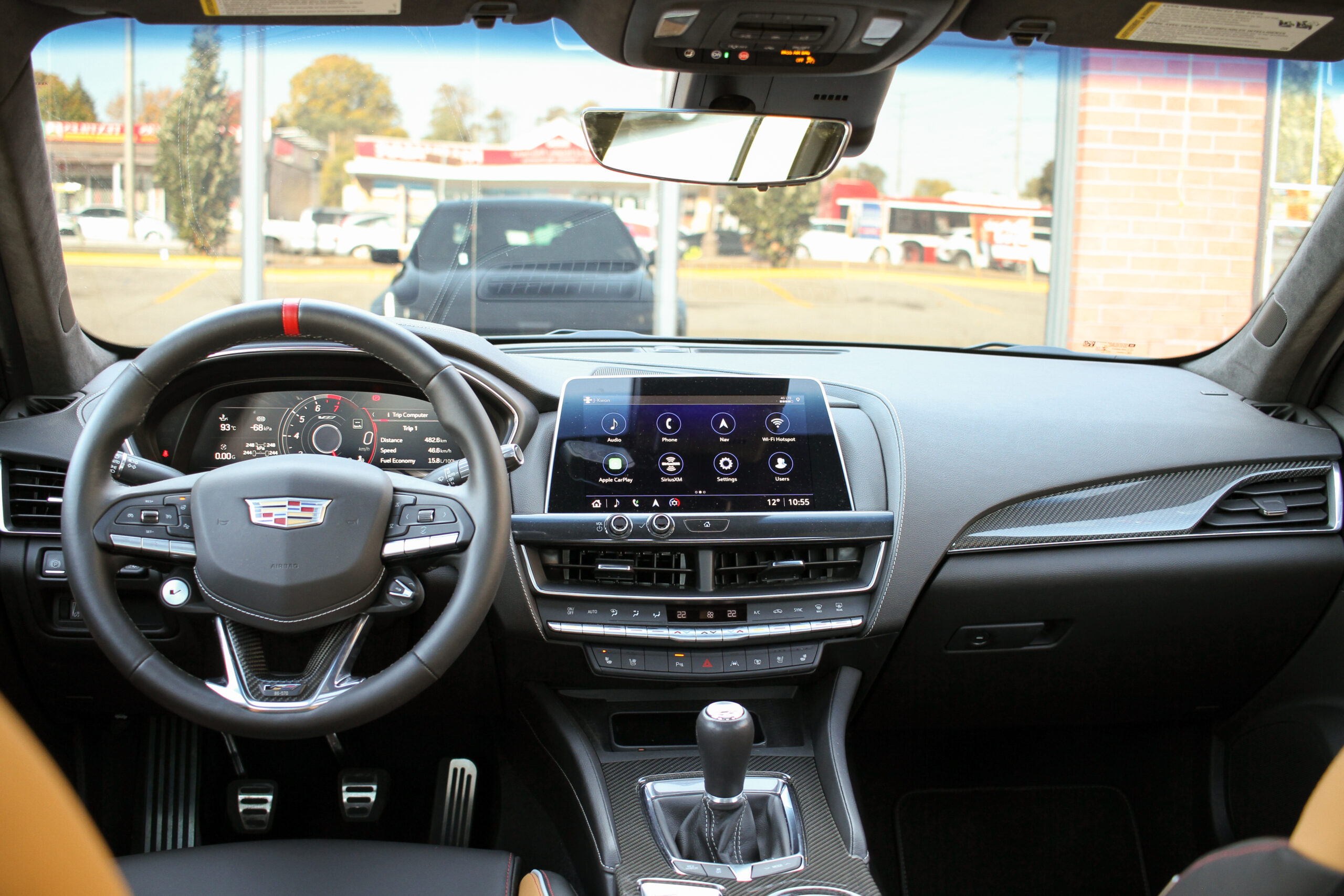The 2022 Cadillac CT5-V Blackwing starts at $86,015 but optioning it up as close as I could get it to this Canadian-spec press unit yielded a car that would cost $104,965. According to GM Canada’s price sheet, the car you see before you cost exactly $112,753 CAD. Options included the à la carte dual-pane sunroof, more than $10,000 CAD worth of additional carbon fiber, full semi-aniline tan leather seats for $7,000 CAD, bronze brake calipers, bronze wheels, and the assisted parking package.