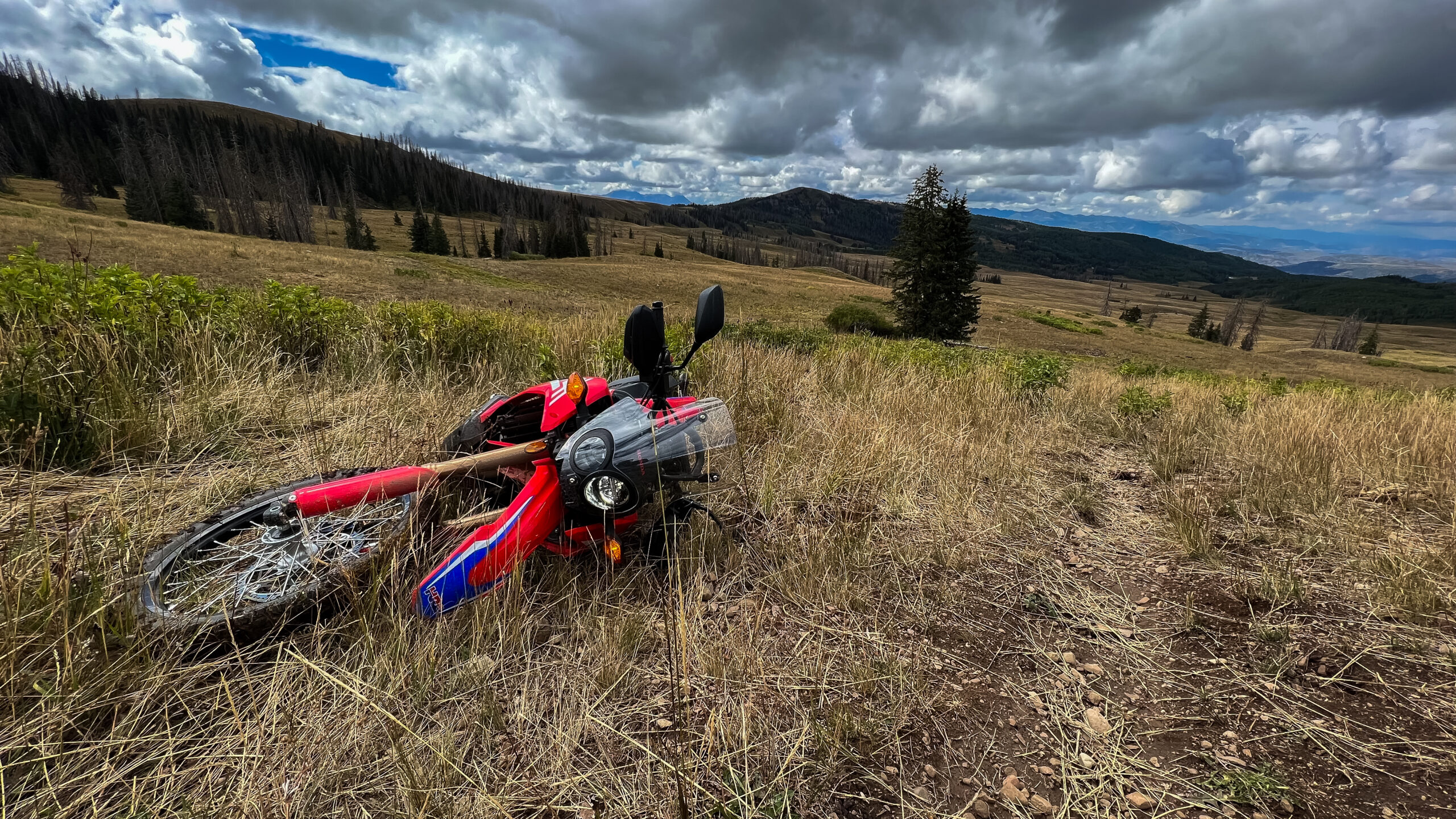 Ten-plus inches of suspension travel soaked up ruts, head-sized boulders, and all manner of fallen wood. As for a trailless mountain peak, most of which resembled hard enduro paths, it was slow going, but the summit was absolutely worth it. I could see peaks and valleys so far off into the distance, it could’ve been another state. With each ride, the Honda continued to astound me and its donkey persona stayed true.