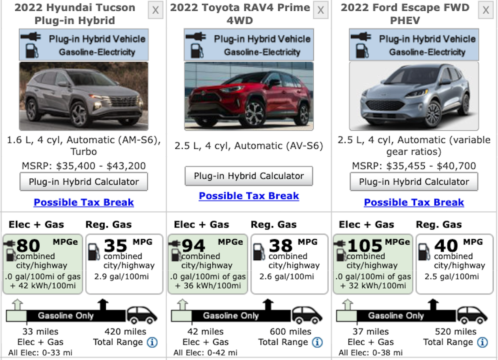 Perhaps its biggest competition comes from within. The Tucson Hybrid Limited comes in at $4,540 less than the PHEV, while opting for the regular, non-hybrid Tucson Limited can save you a whopping $7,500.