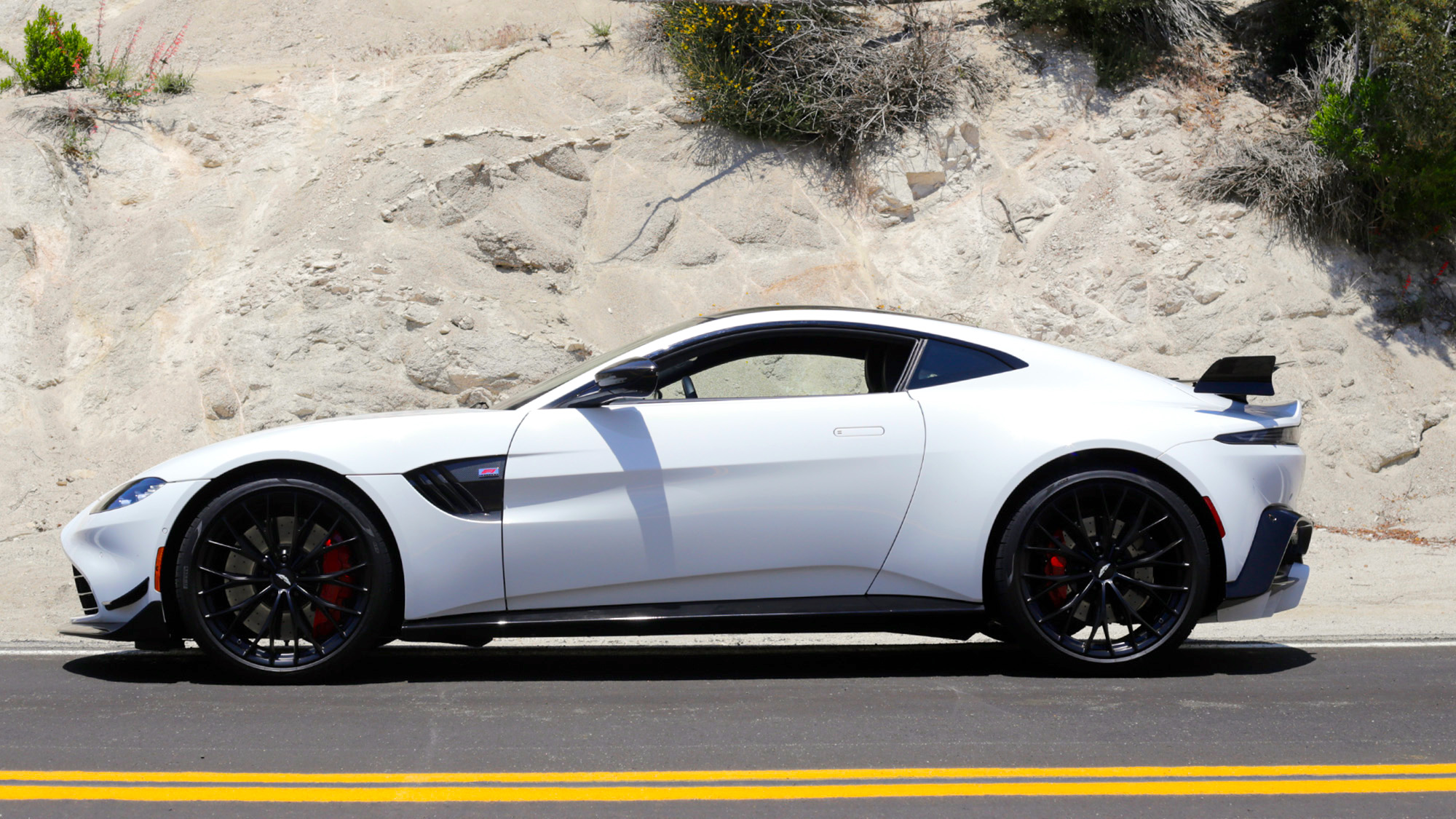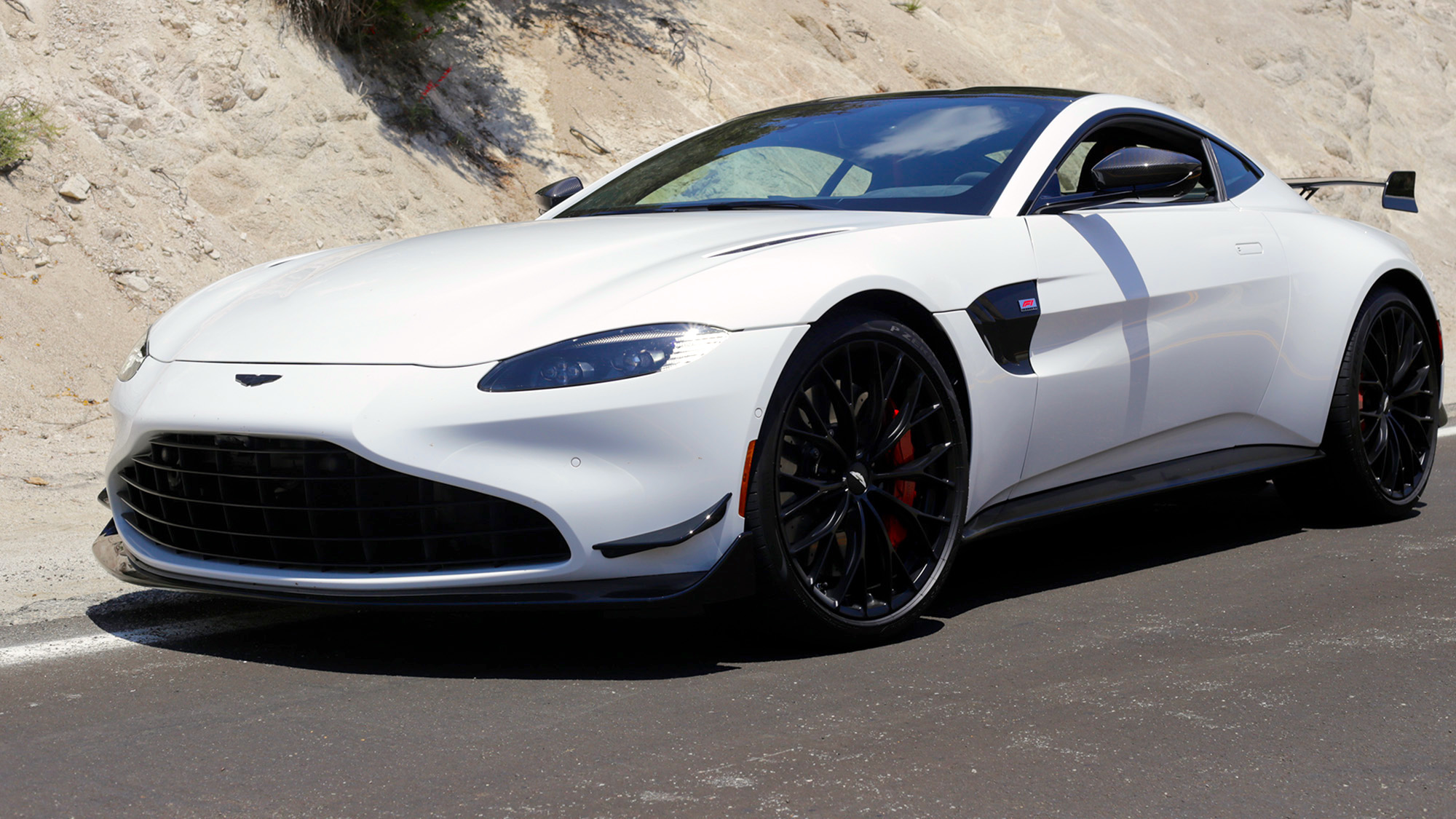 I experienced a bit of an epiphany behind the wheel of the F1 Edition: The guiding hand of Downforce. I was shocked at how planted and secure it felt turning into and then slingshotting out of a desolate ribbon of asphalt laid across the Mojave desert’s gentle curves. It just gripped, gripped, and gripped some more. I could feel the aero going to work, keeping the rear end perfectly stuck to the sun-beaten tarmac while deep into eyebrow-raising speeds. Slicing through one particular right-to-left uphill transition with my foot braced firmly against the gas, the change in lateral g felt like a roller coaster. It completely got under my skin, and I now yearn to rip this Vantage on track where the floodgates of all this potential can truly be broken open.