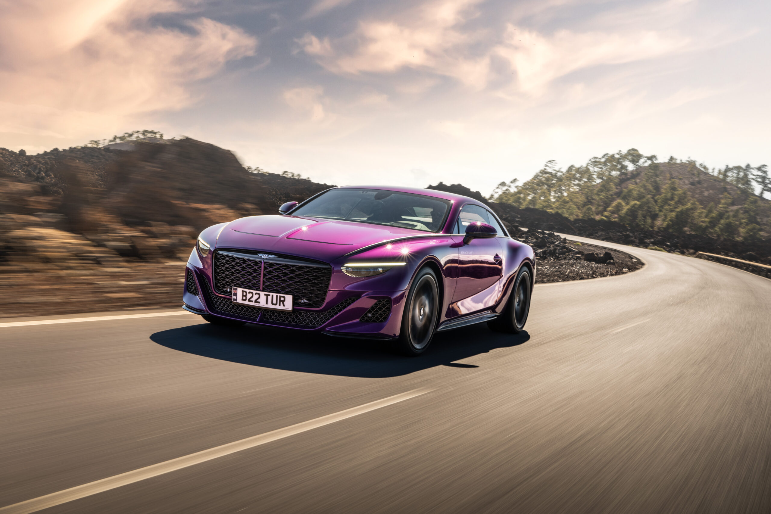 Let’s start with that name. What is a Batur? As of this writing, the top Google result is still a volcano in Bali, but in terms of automobiles, the Batur is Bentley’s most powerful car yet. Six liters, two new turbos, a new intercooler, and a new intake add up to 740 hp and 738 lb-ft of torque. Zero to 60 mph takes 3.3 seconds and the car tops out at 209. It also shares chief chassis components with the refinedly rowdy Continental GT Speed albeit with a slightly wider rear track and weighing almost 90 pounds less thanks to a rear-seat delete and carbon body parts.