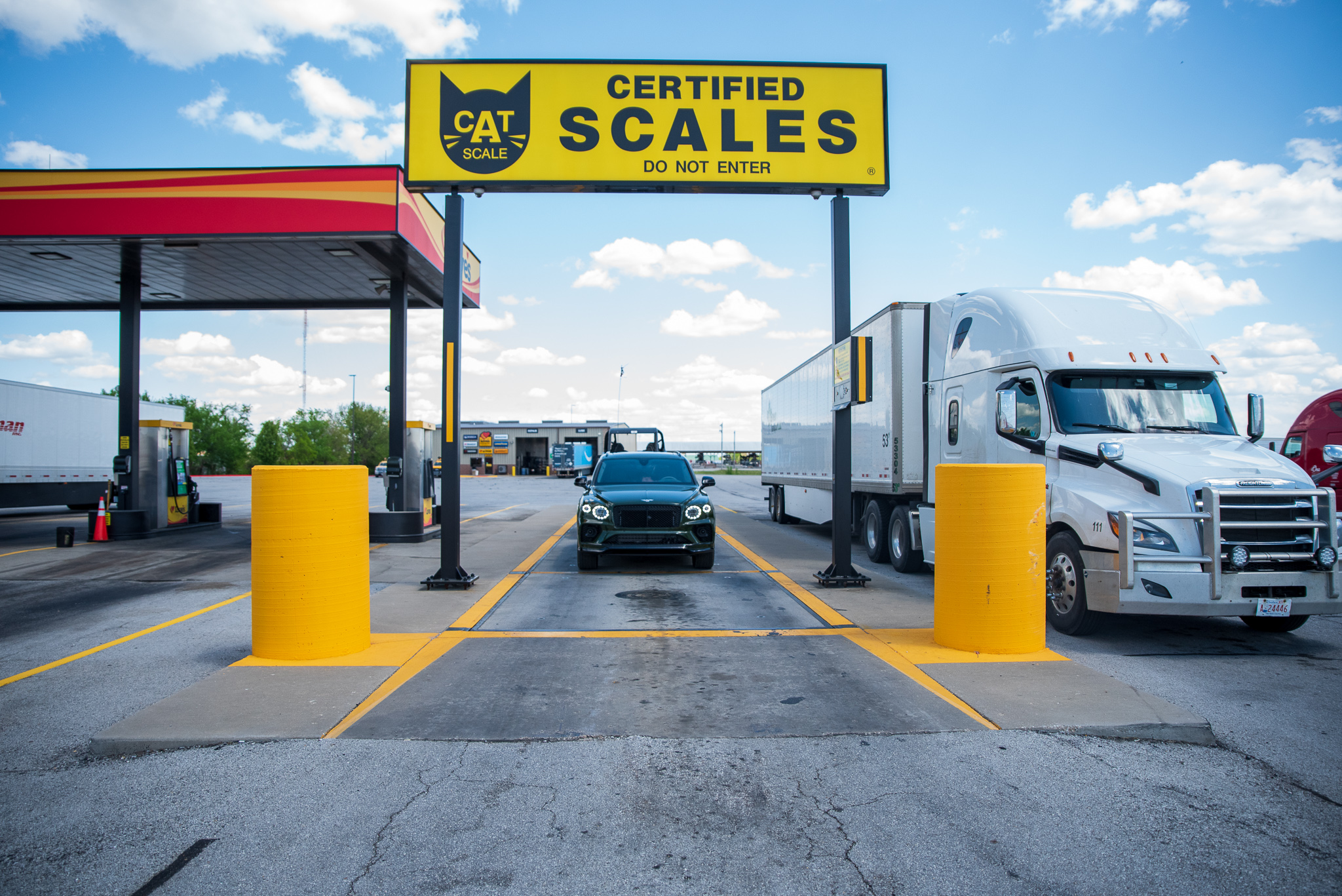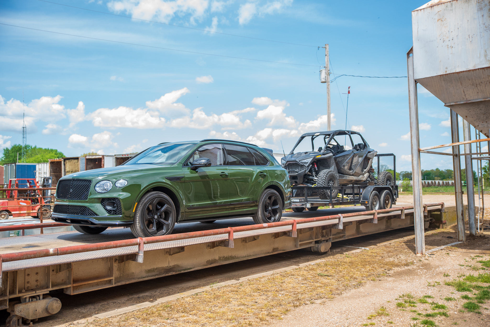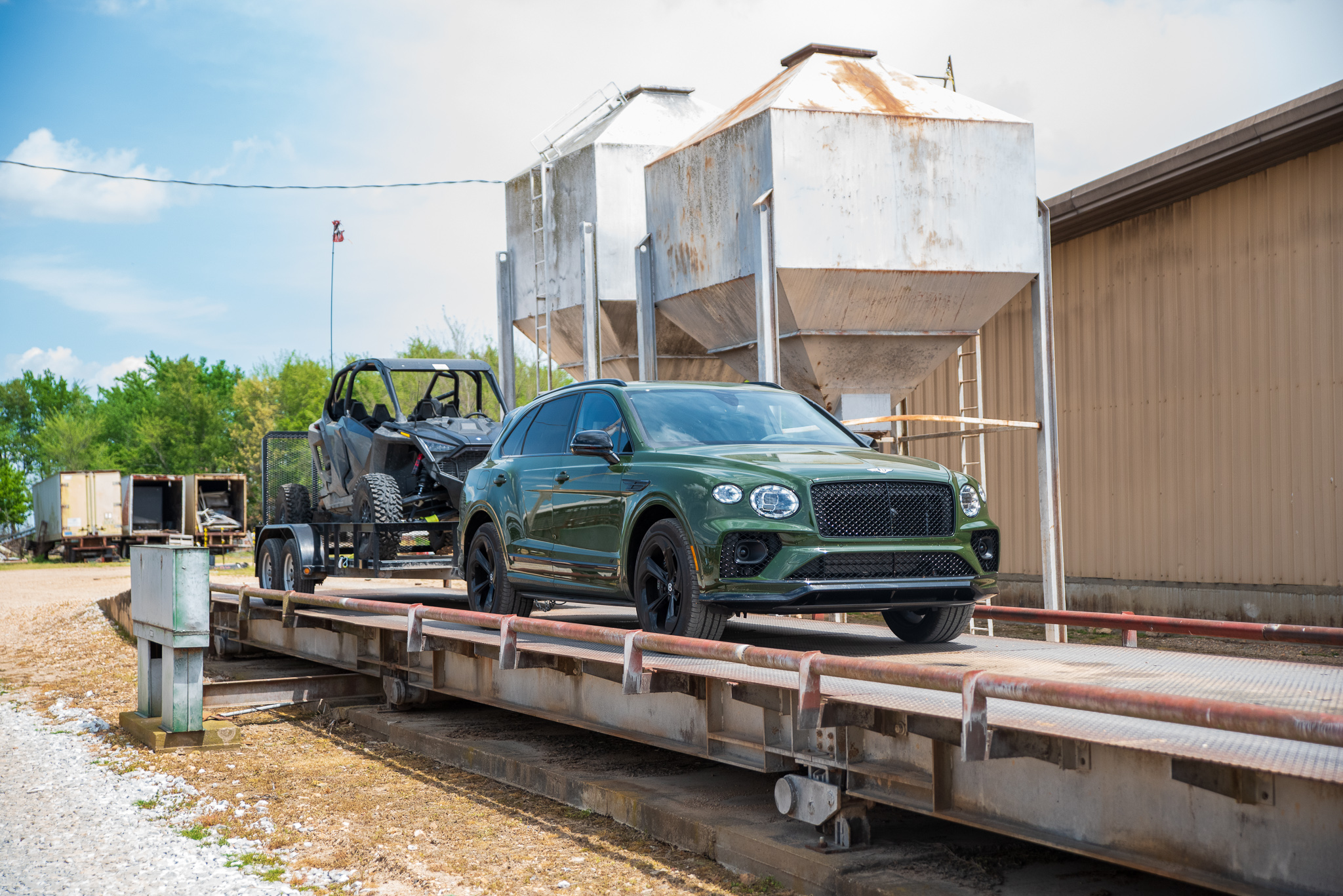 I was almost disappointed it wasn’t heavier—the RZR Pro R 4 is the heftiest UTV on the market, and I wasn’t sure about the trailer’s unladen weight—but all was well. We took off once the trailer was hooked up again, catching a few funny looks as we pulled out of the gravel lot. Next up was a Love’s truck stop, which just so happened to have a CAT scale around back. I thought it’d be good to confirm the feed mill scale’s accuracy and also log some wheel time in the Bentayga since it was a 73-mile roundtrip.