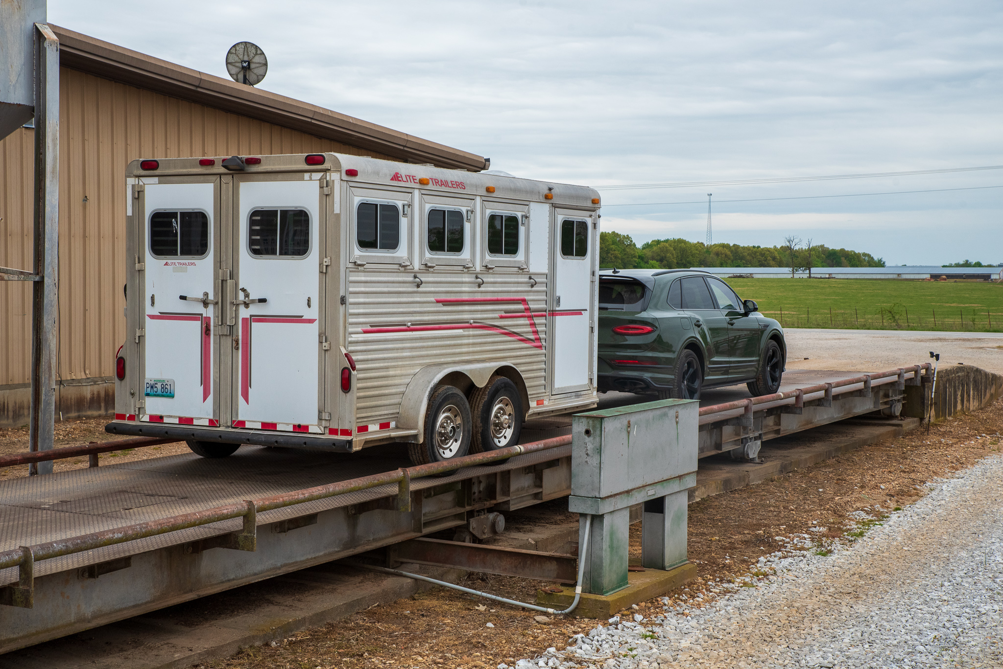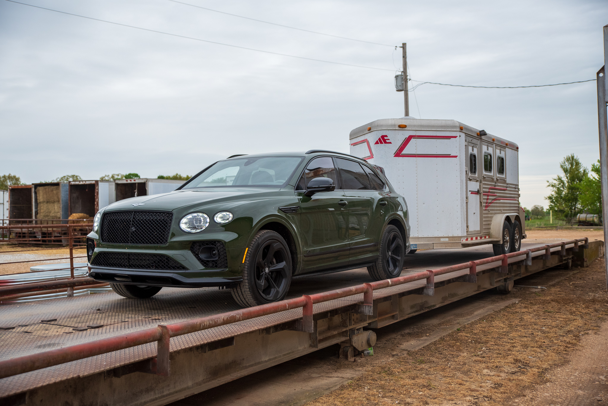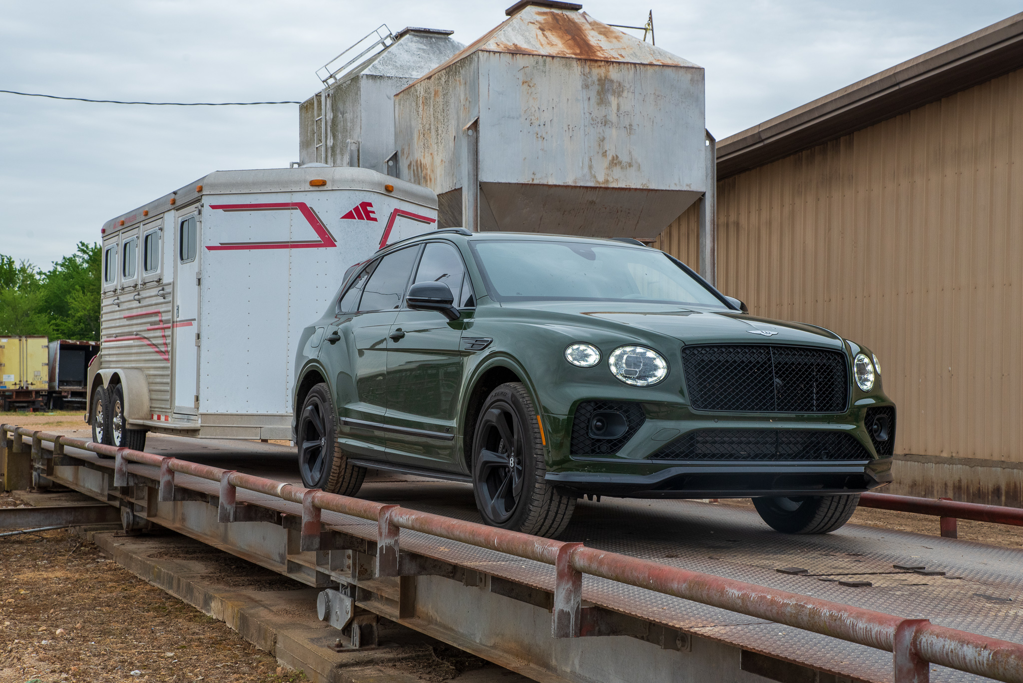 My first stop was the Longview Feed Mill, partially because I wanted to show my friends who work there what I was driving and also because I knew they had a scale. I pulled onto it with the trailer attached first, and the number “9,740” flashed on the display inside the building. It was then time to ditch the trailer and pull across the scale empty, which resulted in a weight of 5,560 pounds. That meant my trailer was 4,180 pounds—a good deal shy of the Bentayga’s 7,700-pound limit but still a respectable (and realistic) load.
