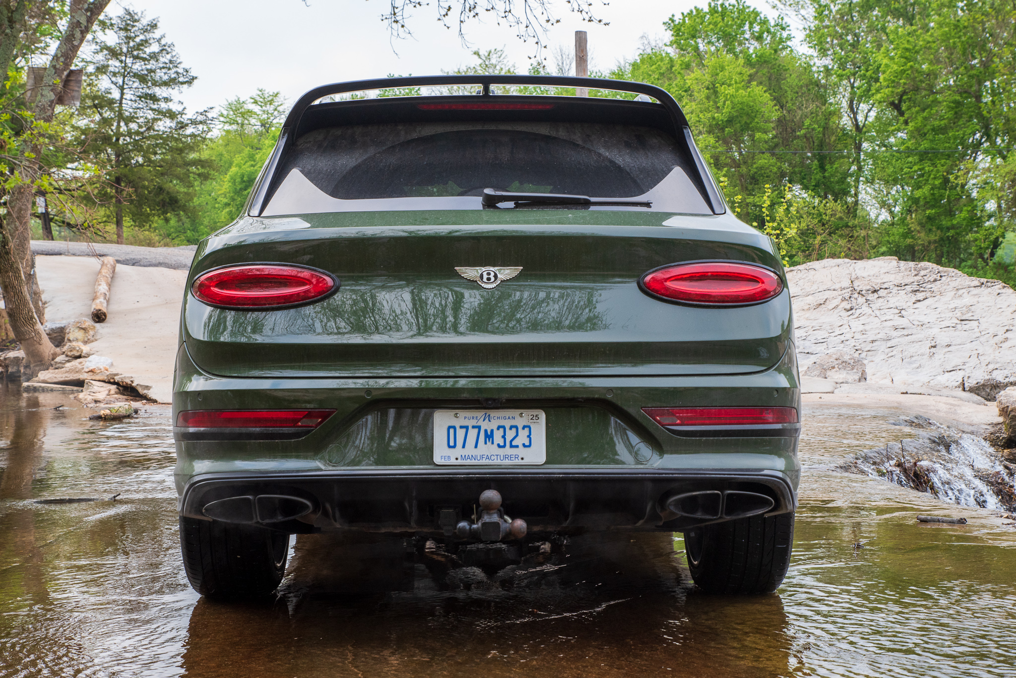 As tested, this vehicle costs a cool $299,715 thanks to a whopping $65,890 in options. Yes, really. The Naim sound system was the most costly at $9,150 while the Bentley Styling Specification was a close second at $8,915. The latter adds a front splitter, side skirts with metallic Bentley badges, and a carbon fiber rear diffuser and spoiler. Most essential for our experiment was the fixed tow bar, a $1,240 add-on.