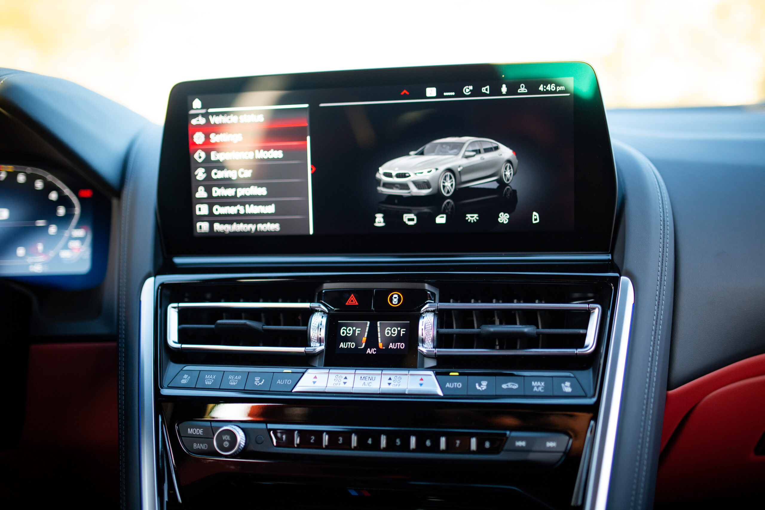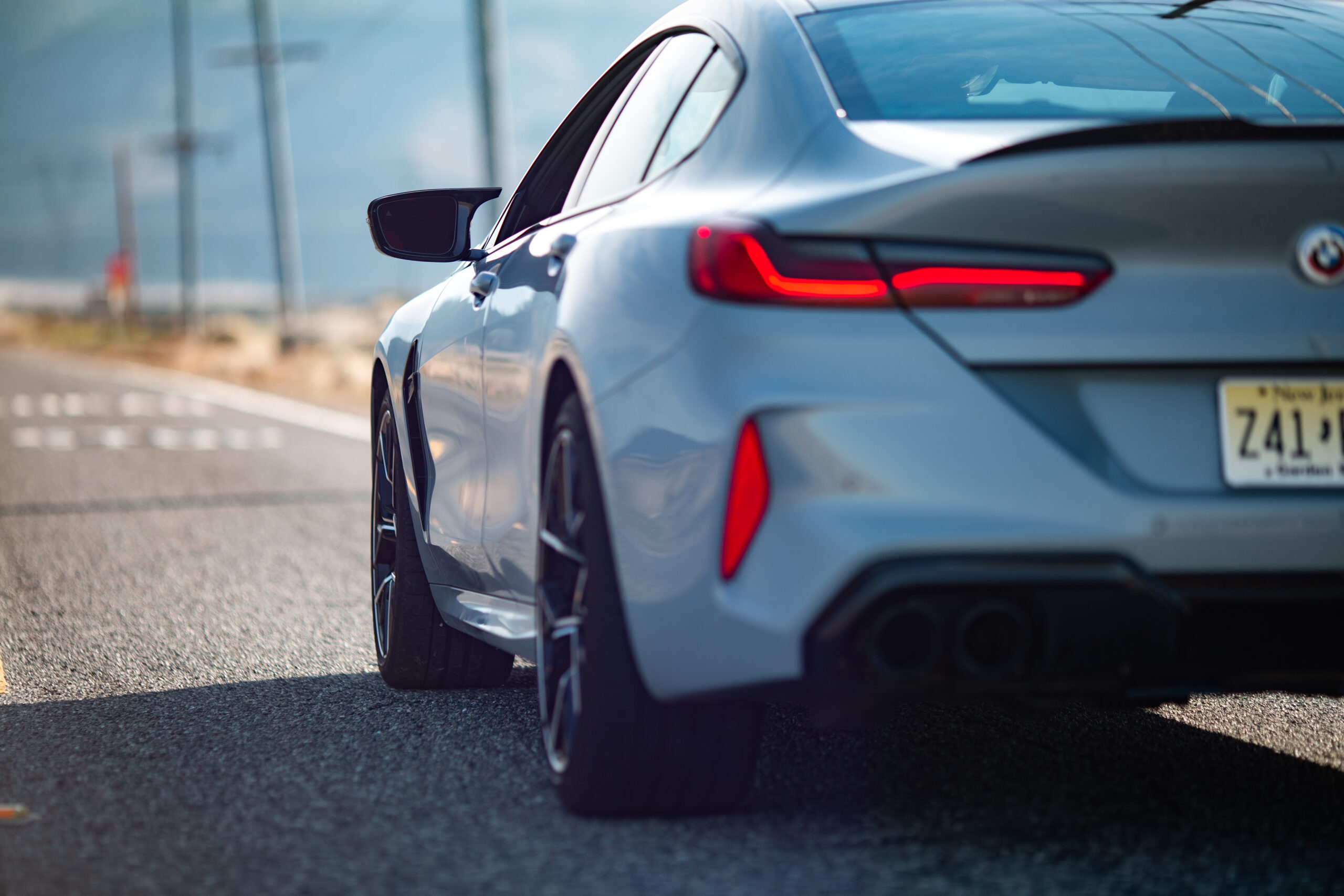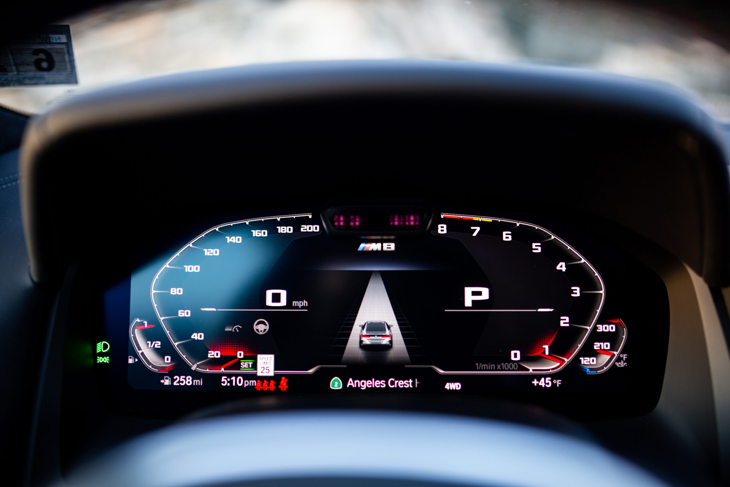 Inputs were well tuned. Steering was lacking road information but was precise and built up weight in a linear way with a nice glut of weight on center, though it’s still not the steering some BMW enthusiasts (like me) remember. My tester had the optional $8,500 carbon ceramic brakes that never broke a sweat, even with repeated heavy stops, though the brake pedal took getting used to. Initial bite from the brakes was aggressive, but the brake-by-wire system exclusive to the M8 had feel issues, with a looseness at the top of the pedal that made it hard to apply the brakes smoothly. Getting more decelerative force from the brakes would also take more pedal pressure than I’d like. They got the job done, but pedal feel needed work.