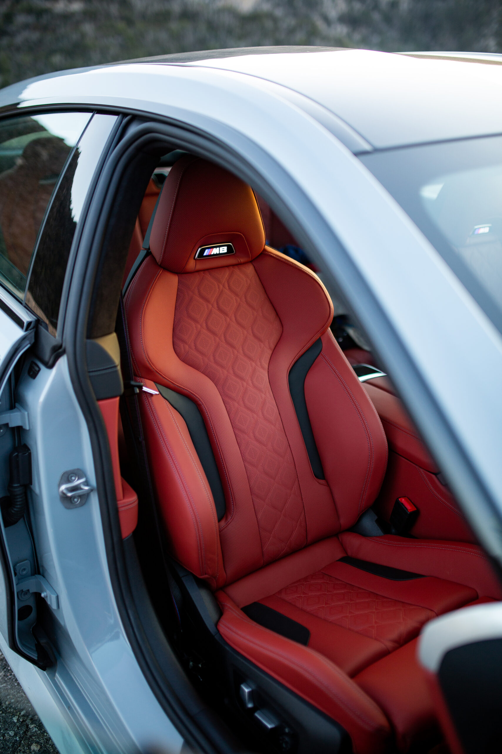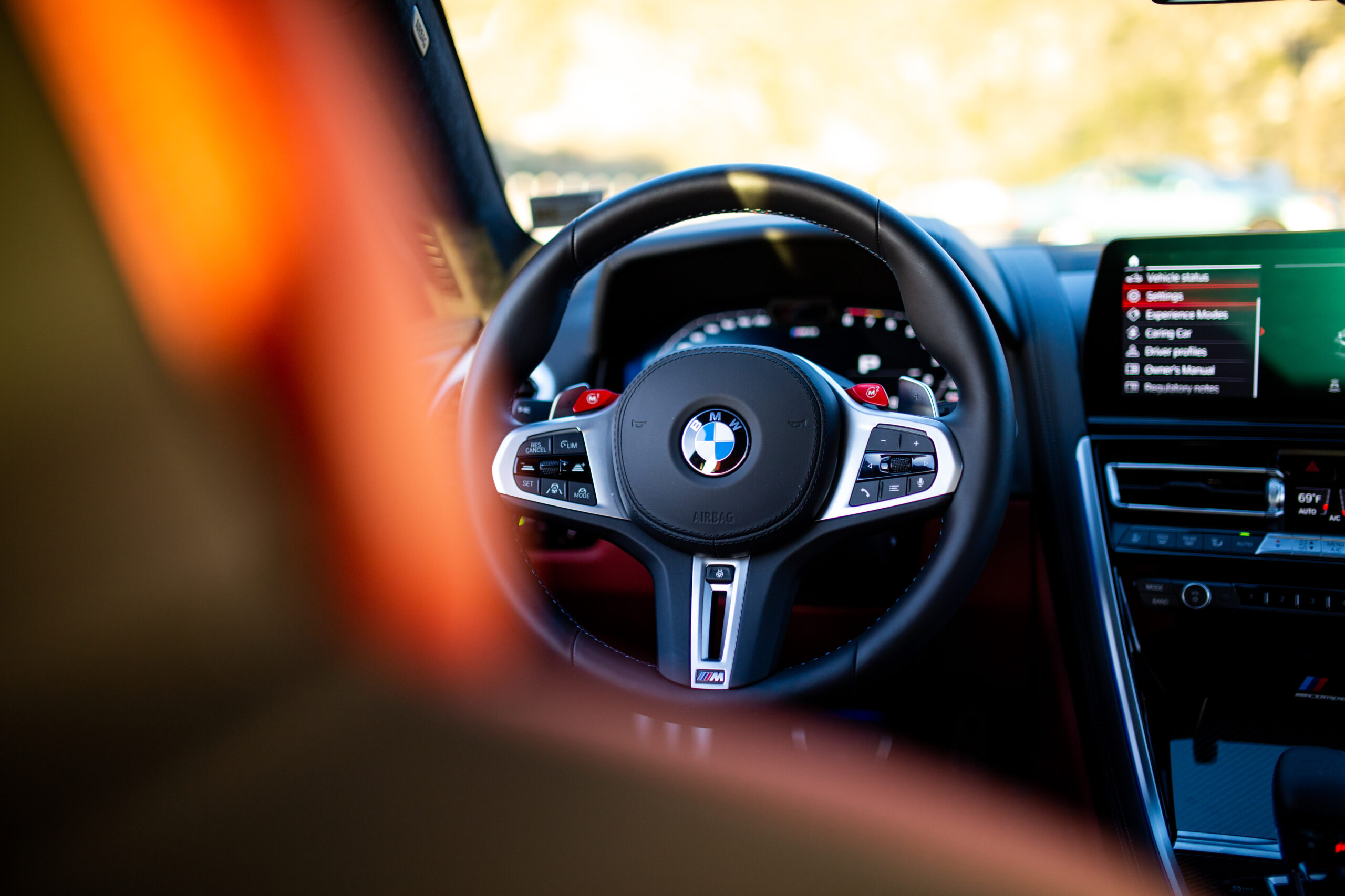 The interior is unique to the 8 Series, mostly in the small details like the air vents, door handles and Bentley-like ambient lighting. It’s all incredibly high quality with fit-and-finish right on par with its six-figure price. My tester had the optional Sakhir Orange interior with the standard M seats, which featured a nice quilted pattern. It’s an incredibly well-judged space, with a driving position sunk sports-car low and a thick steering wheel that met my hands level with my chest.