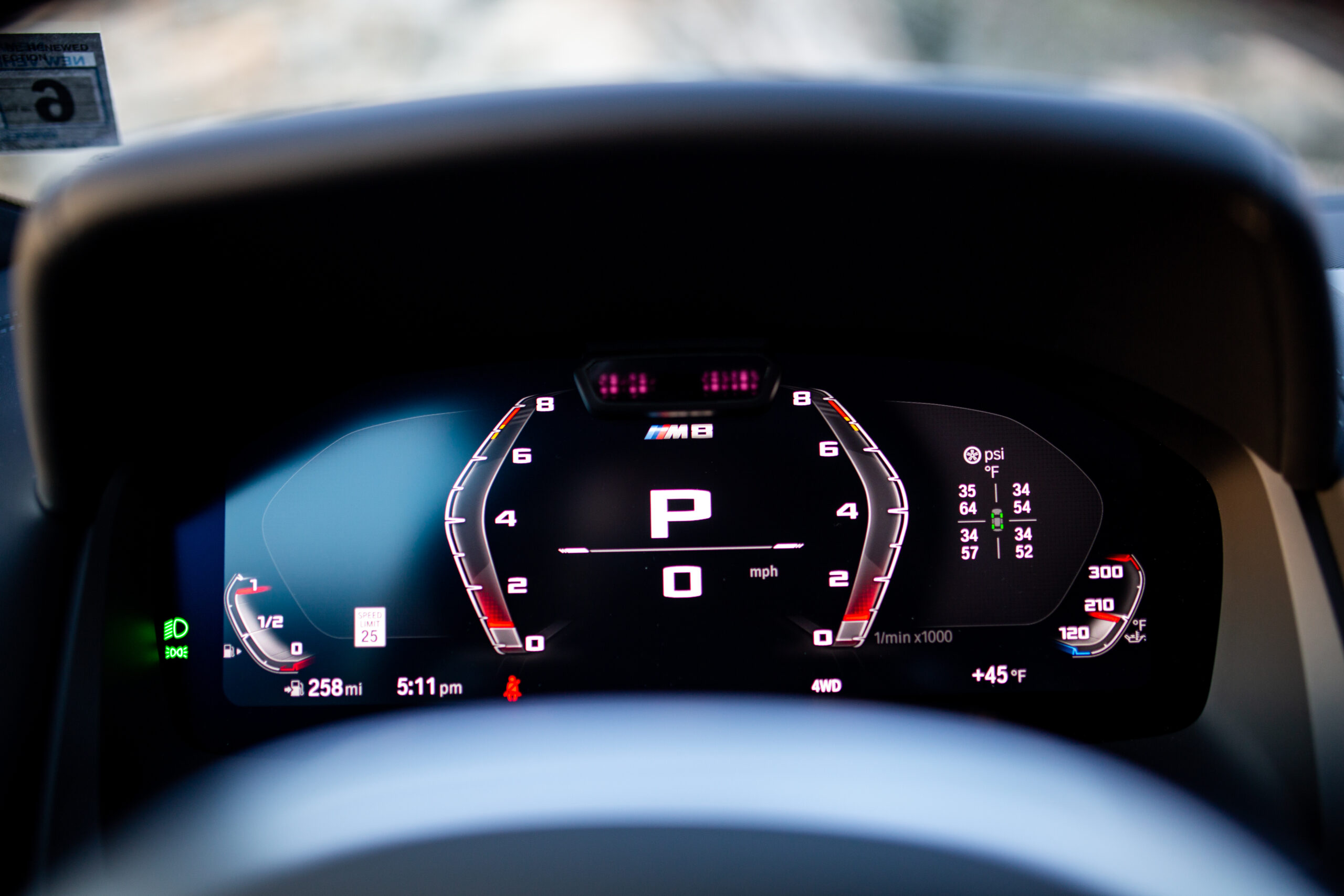 But the most stunning, utterly gobsmacking part of driving the car was the way it manipulated physics using a combination of electronics, suspension, and AWD. The M8 is not a graceful dance partner. It is a brute-force solution to the problem of handling. Using a nearly square BMW-spec Pirelli P Zero tire setup with a 275-mm wide front tire and a 285-mm rear tire, it somehow gripped ferociously but had a soft, approachable limit. And it was happiest when set to its most aggressive M Dynamic Mode with all systems set to Sport Plus.